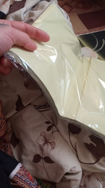 Пожалеете, что сложенный в два сложения. Сейчас под стопкой книг, чтобы выпрямиться. Бумага не была повреждена