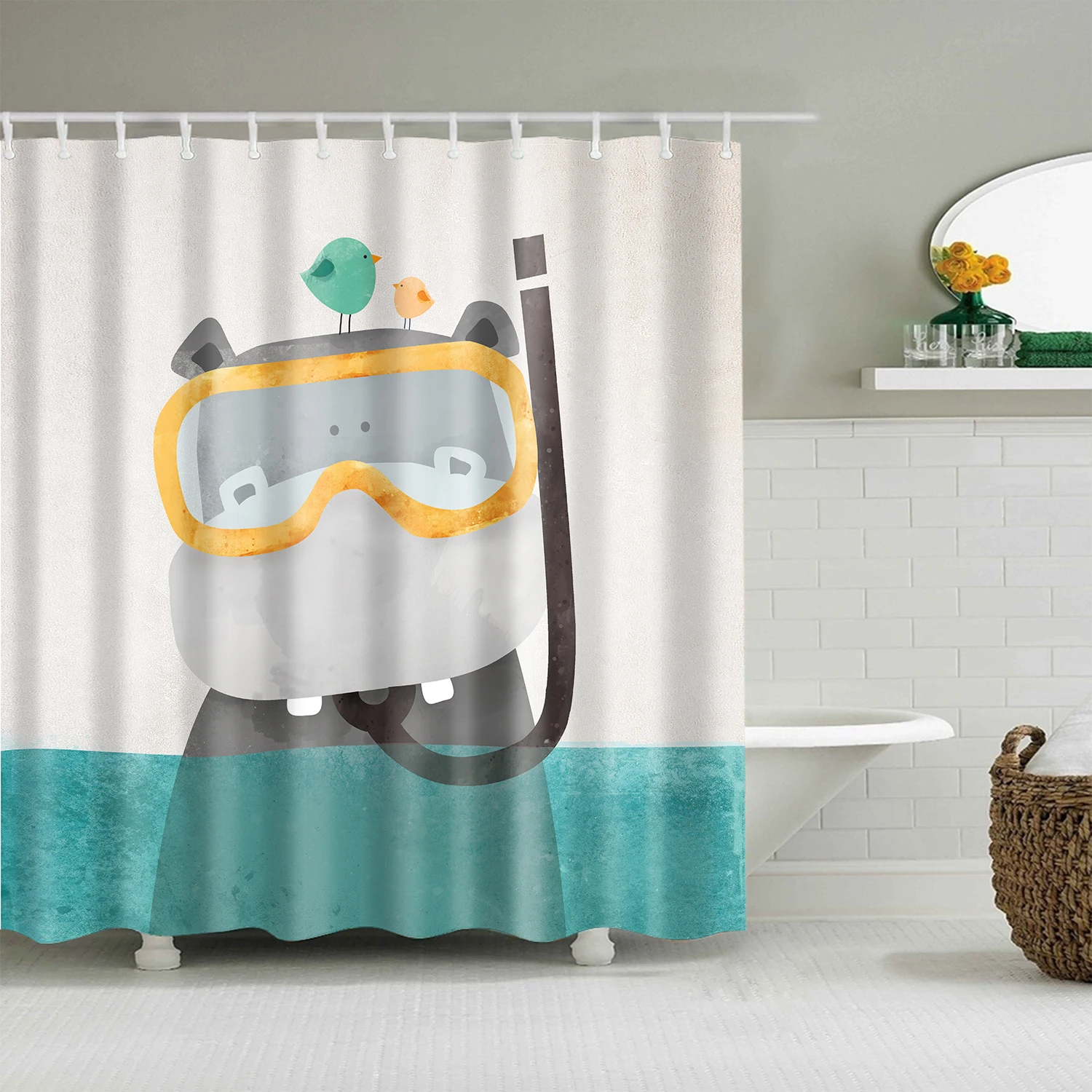 Занавеска для душа из полиэстера, водонепроницаемая, с милыми живот...