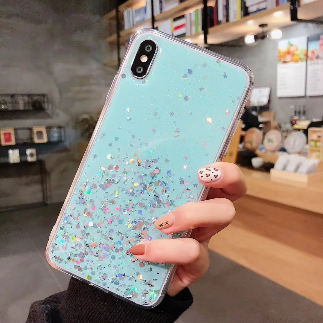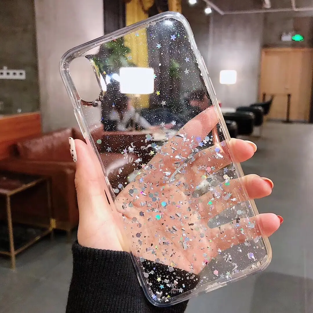 Блестящий чехол LOVECOM с блестками для телефона iPhone 13, 12, 11 Pro Max, XR, XS Max, 6, 7, 8 Plus, X, мягкий прозрачный чехол-накладка с эпоксидной звездой
