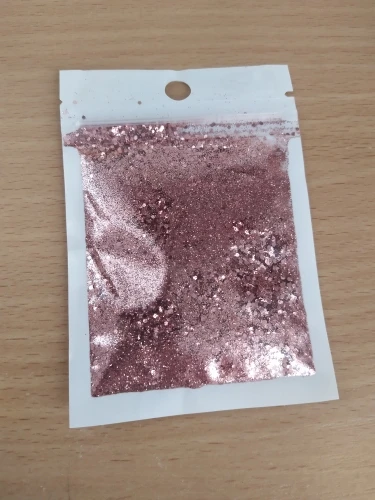 Больше порошка чем блесток покрупнее. Цвет совпадает с фото. Доставка 3 недели. Для ногтей рекомендую. Для чего другого вряд-ли подойдёт. Спасибо.