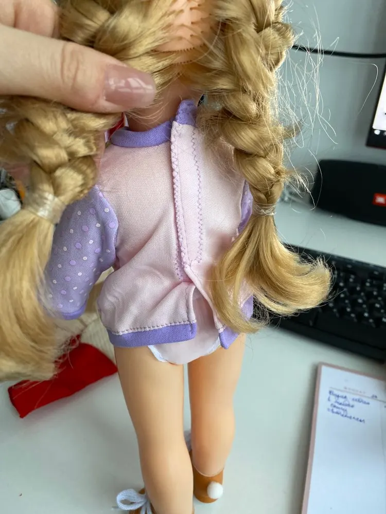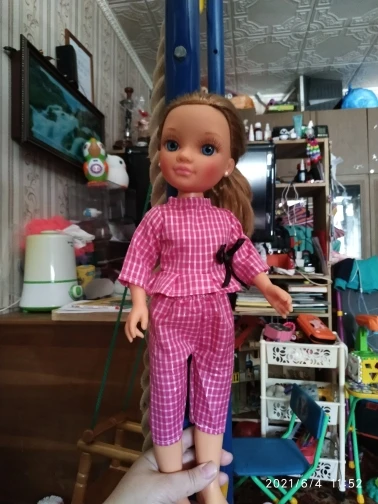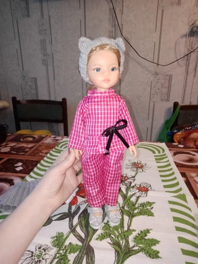 Отличный комплект, но помоему джинсы прислали не как на Фото. Эти более широкие и темные. Дополнила пояс резинкой и стало только лучше! У меня худенькая куколка 30 см. Одежда ей подошла. На куколку 33 см «Весна» этот комплект как будто в обтяг.