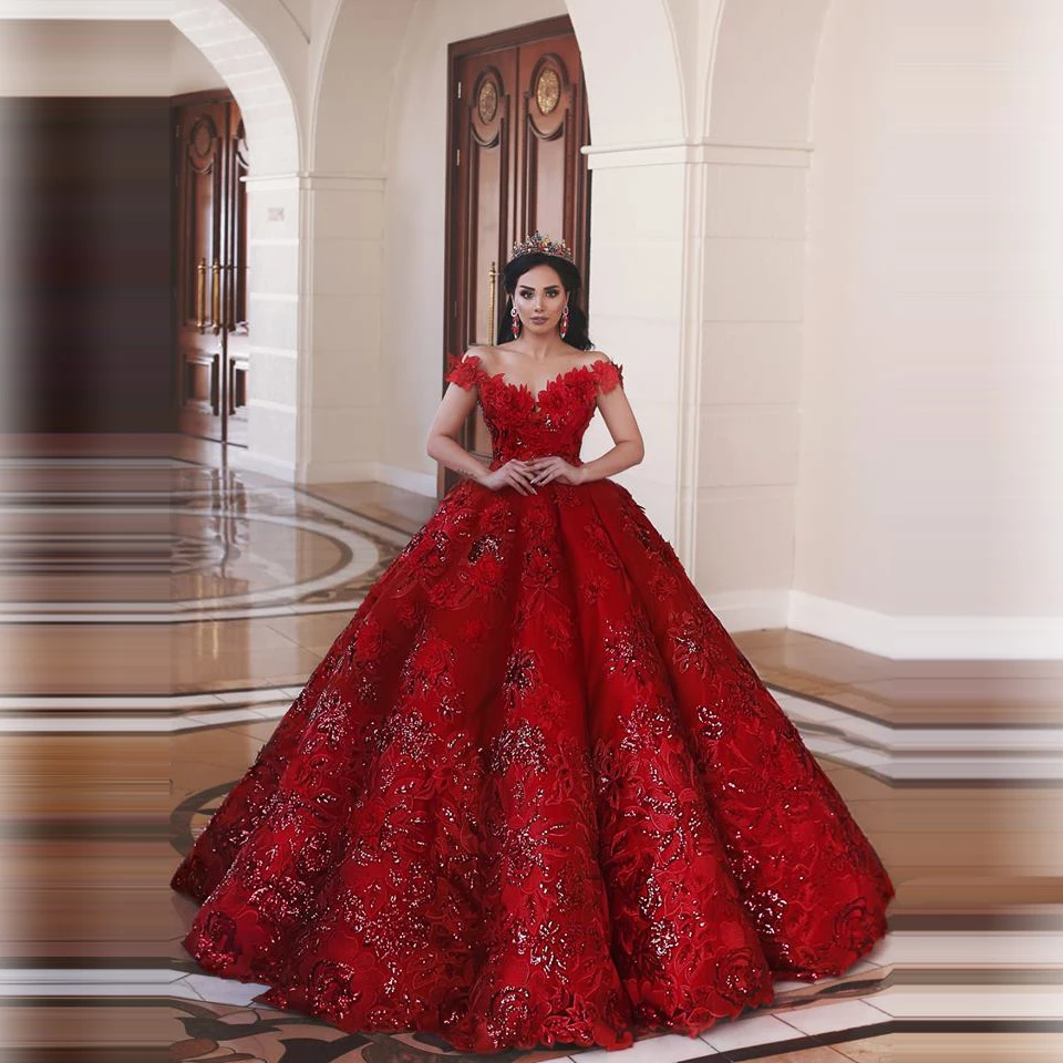 Красные платья невесты Ближнего Востока, цветочное строгое платье с открытыми плечами, бальное платье сердечком, Длинные свадебные платья