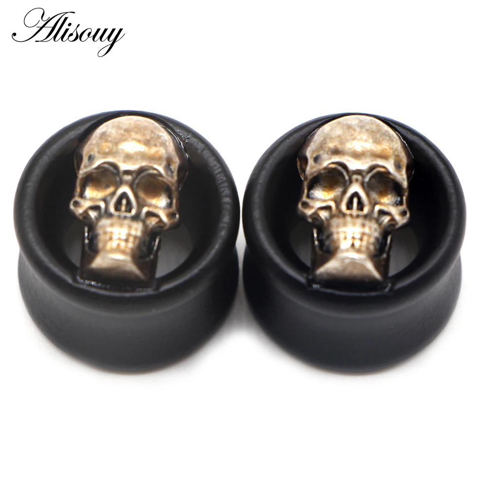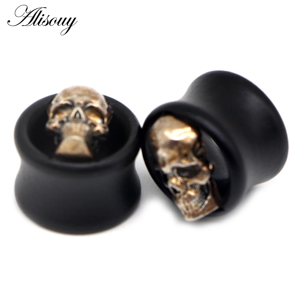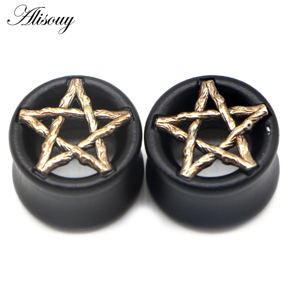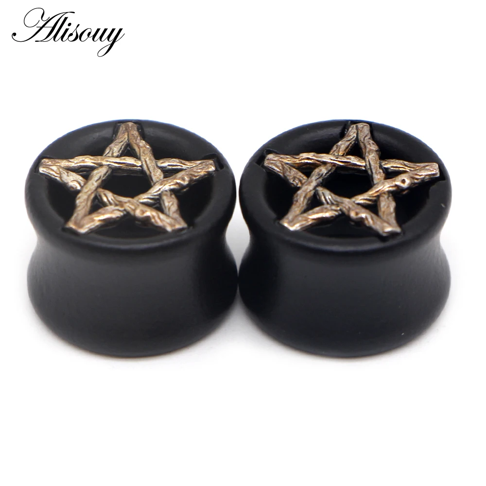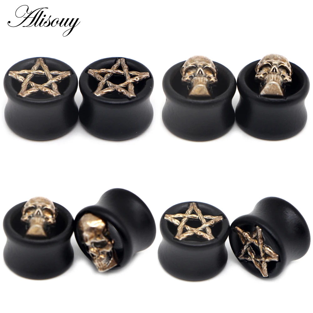 Alisouy 2 шт. черные деревянные затычки для ушей телесные туннели череп в форме звезды пирсинг ювелирный Калибр растягиватель расширитель ювелирные изделия