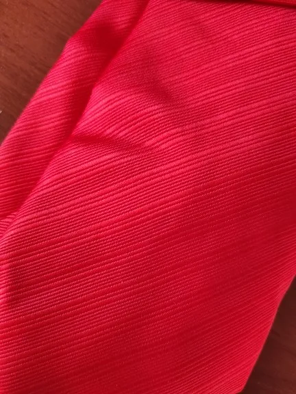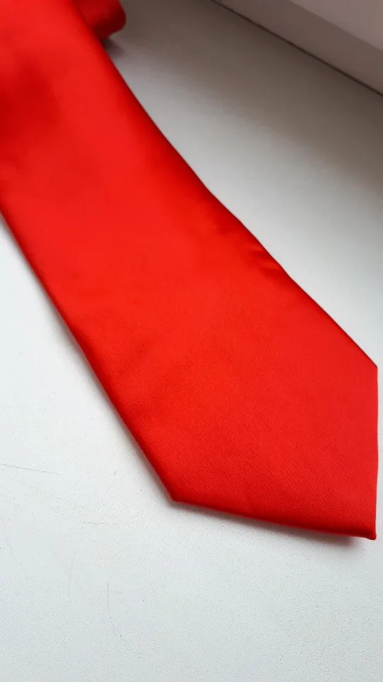 не соответствует картинке - более светлый. Ярко алый, а не красный. И, главное, прямо в центре галстука - пятно от грязных рук при отправке. отправлять назад не буду, так как 2 месяца веру спор с другим магазином - Soloveddress (пиджак покупал), который не хочет принимать товар с таможни, в итоге я потерял там 65usd. Поэтому этот товар лучше отправлю на подвязывание томатов.