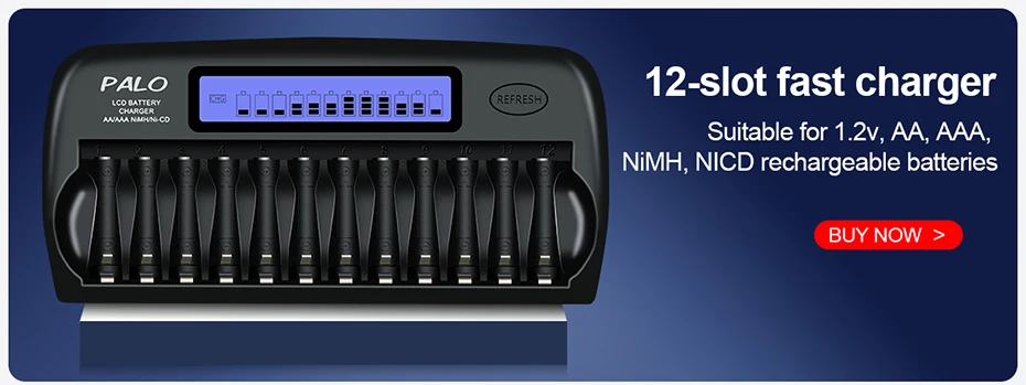 Зарядное устройство Palo, 4слота, ЖК-дисплей, для никель-металлогидридных, никель-кадмиевых аккумуляторов 1,2В AA, AAA, C, D или 9В