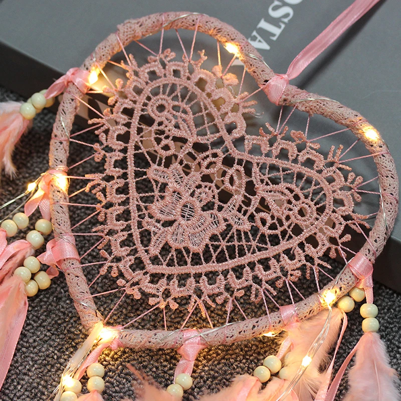 Светодиодный светильник Ловец снов с пером, Ловец снов в форме сердца, светильник для дома, настенное украшение для дома, вечеринки, свадьбы, подарок