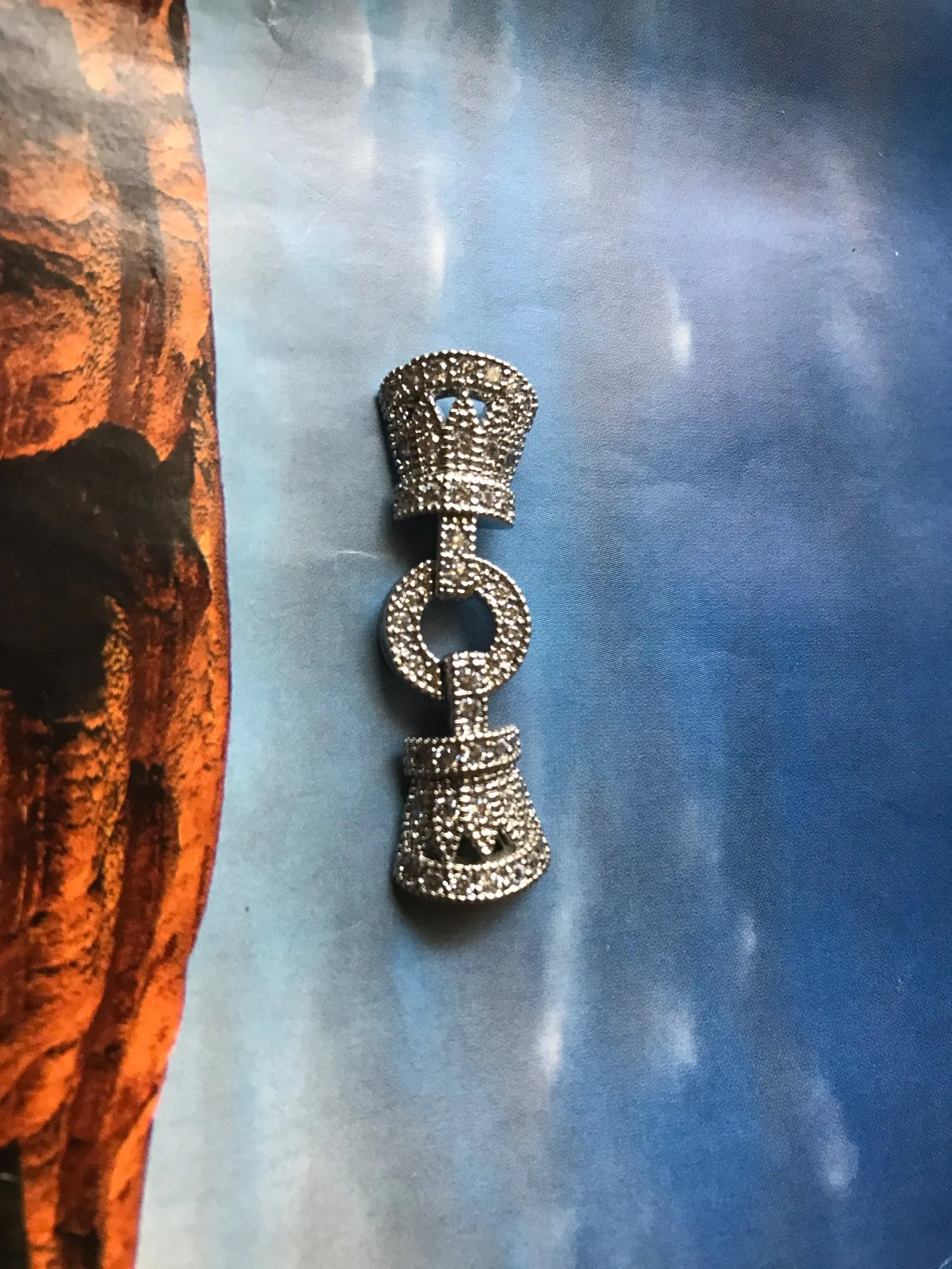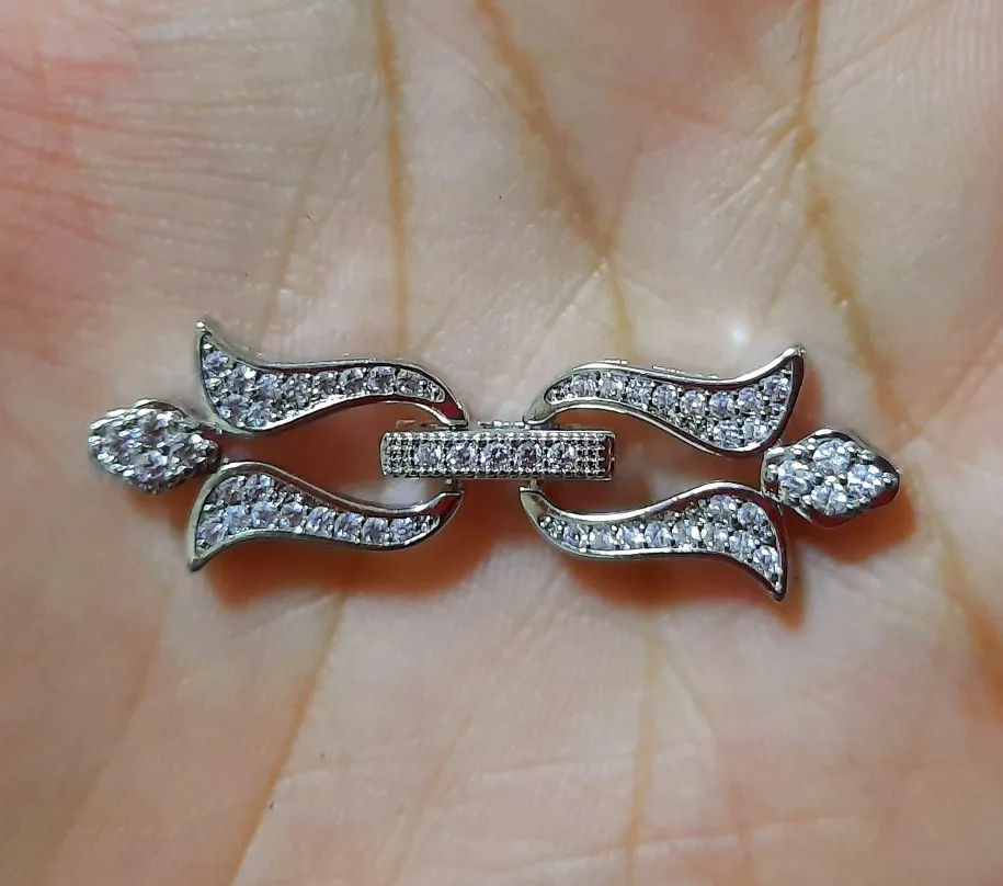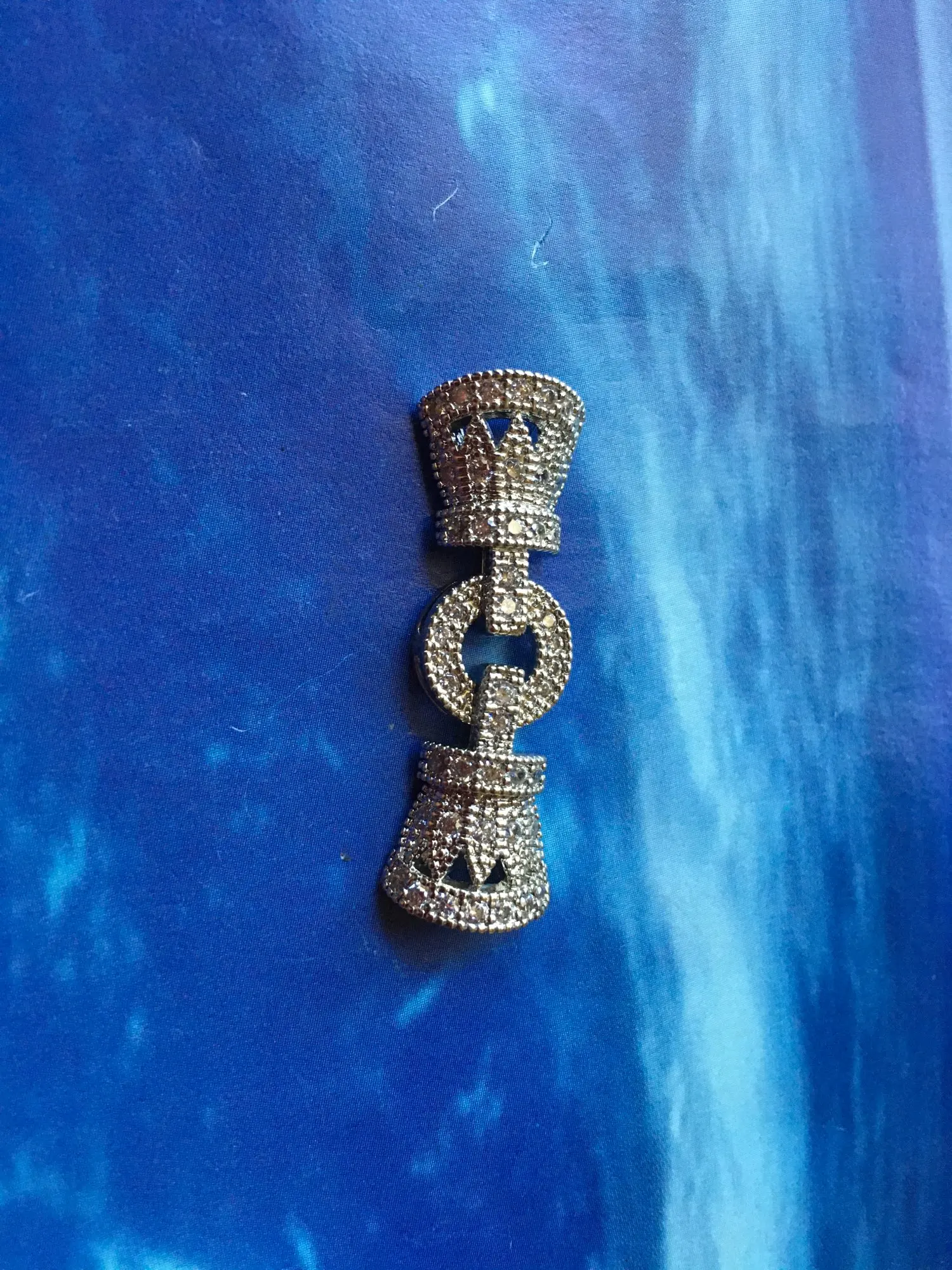 Красивый замочек, заказывала для двойного браслета. В работе пока не использовала. Все циркончики на месте, красиво переливаются. Пришел в сборной посылке в течение трех недель. Товар качественный, рекомендую)))