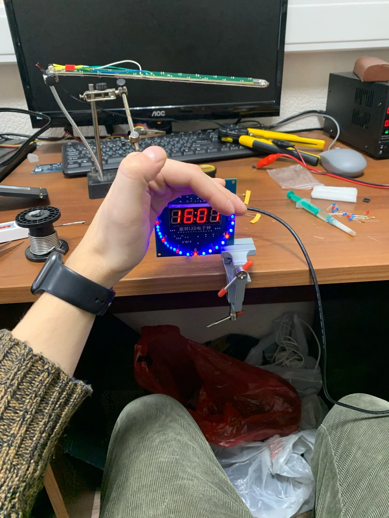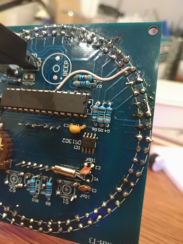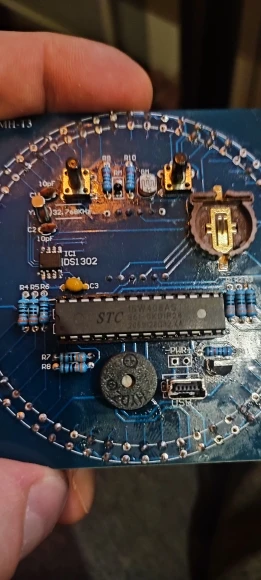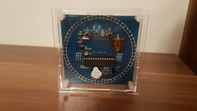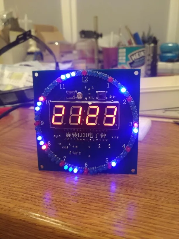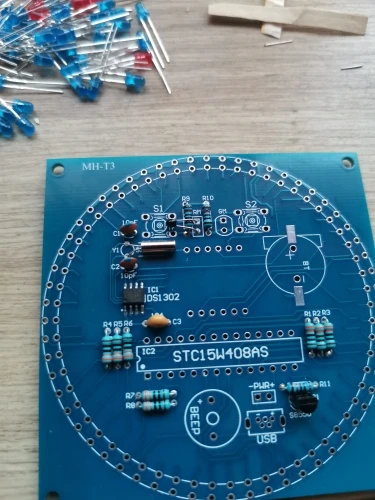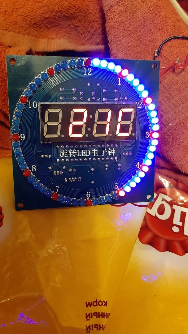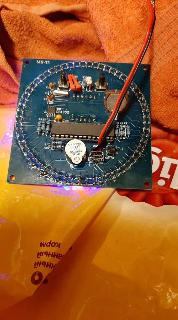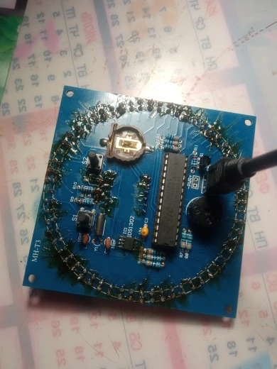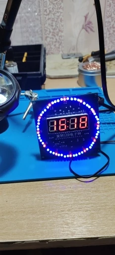 Спешил, и прилепил 60 светодиодов в обратной поляности(но пока не знал об этом). Диоды мигали хаотично а на дисплее показывал какой-то мусор. С дуру подал вместо батарейки напряжение 3.7В и с микросхемы времени пошел дым... На следующий день купил модуль времени в местном магазине в Ивано-Франковске, достал оттуда микру времени и запаял сюда вместе с сокетом под большую комповскую батарейку. Выпаял все 60 светодиодов и запаял уже правильно и всё заработало!!!! Вообщем, не спешите ругать китайцев, и лучше проверьте раза три свои косяки. Слава китайским программистам и трудягам, што помогают нам, серым разобраться в схемотехнике. Получил удовольствие от процесса, буду заказывае ещё на подарок племянникам. РЕКОМЕНДУЮ!:)