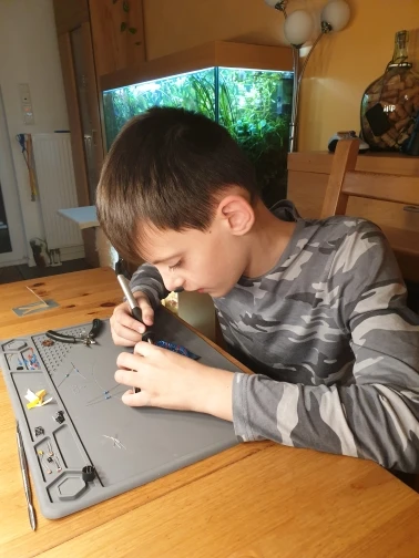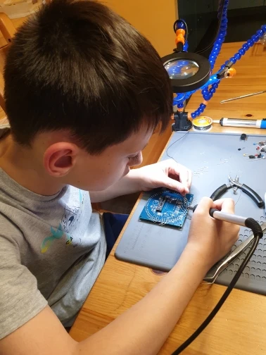 Взял для ребенка 10лет, он за несколько часов спаял себе часы.