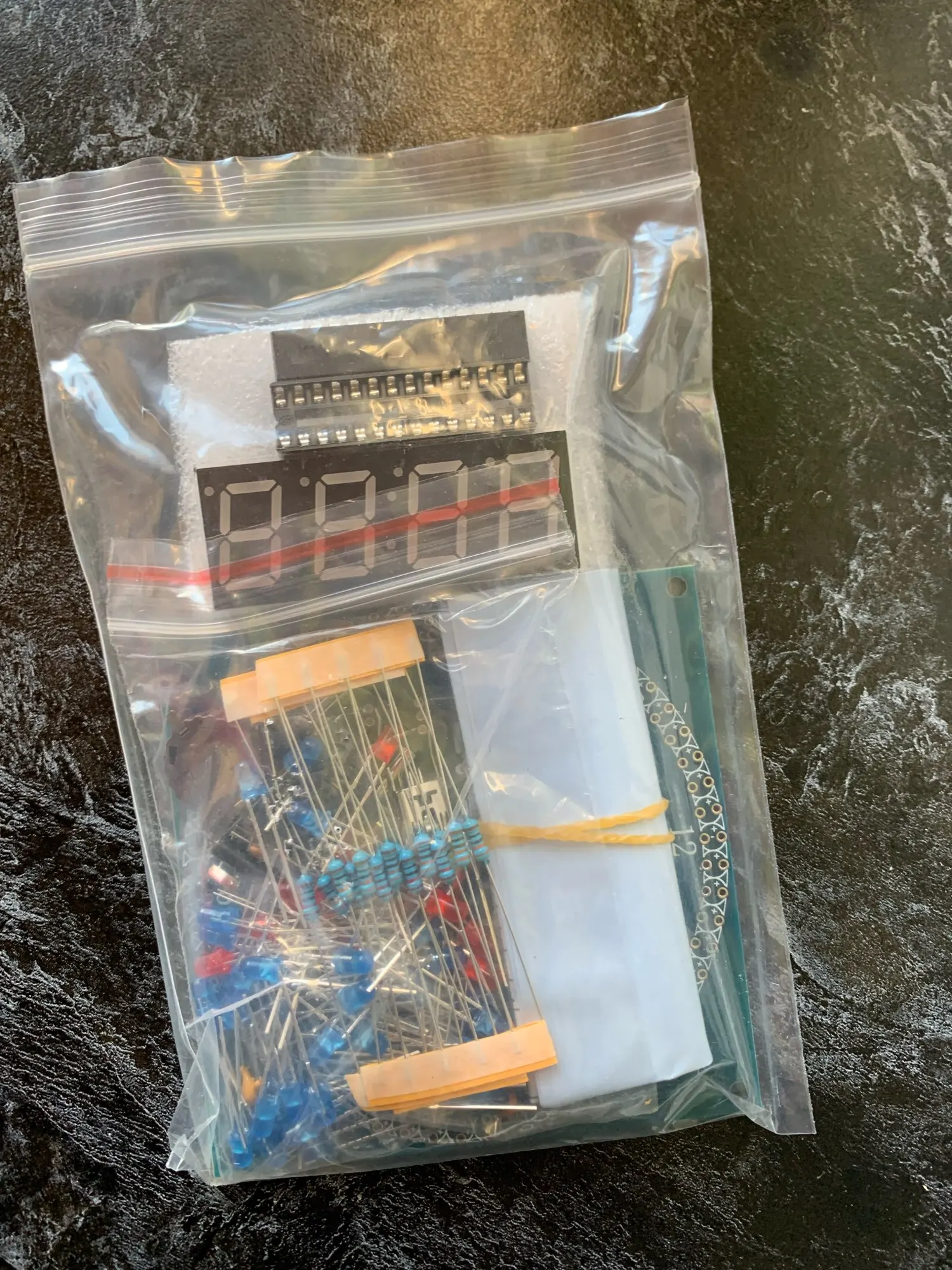 Заказ пришёл через месяц. Упакован в пакет пупырку. На плате расписано расположение деталей более чем понятно, всё собрал за 2 часа. Заработало сразу. Резисторов и светодиодов положили больше, что очень выручило, когда ошибся в цвете припаянных светодиодов. Продавцом очень доволен и рекомендую. Буду заказывать в этом магазине ещё.
