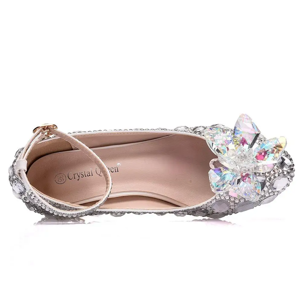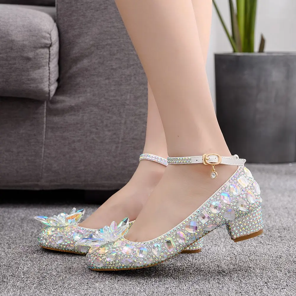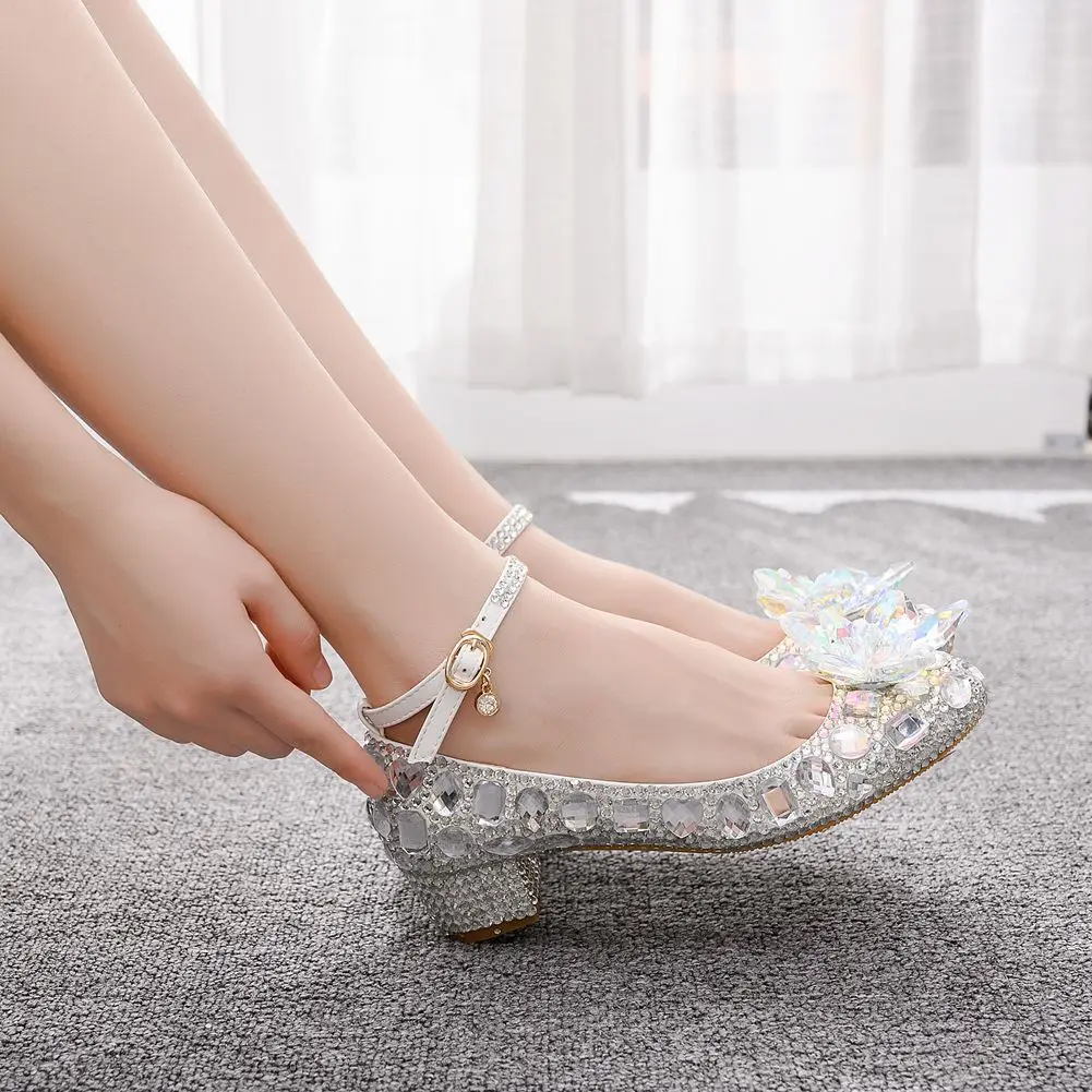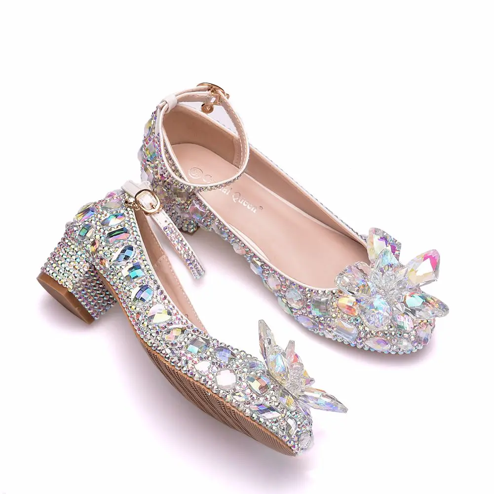 Туфли-лодочки женские на высоком каблуке, королевская Свадебная обувь с кристаллами, с блестками, для принцессы, Золушки, вечеривечерние