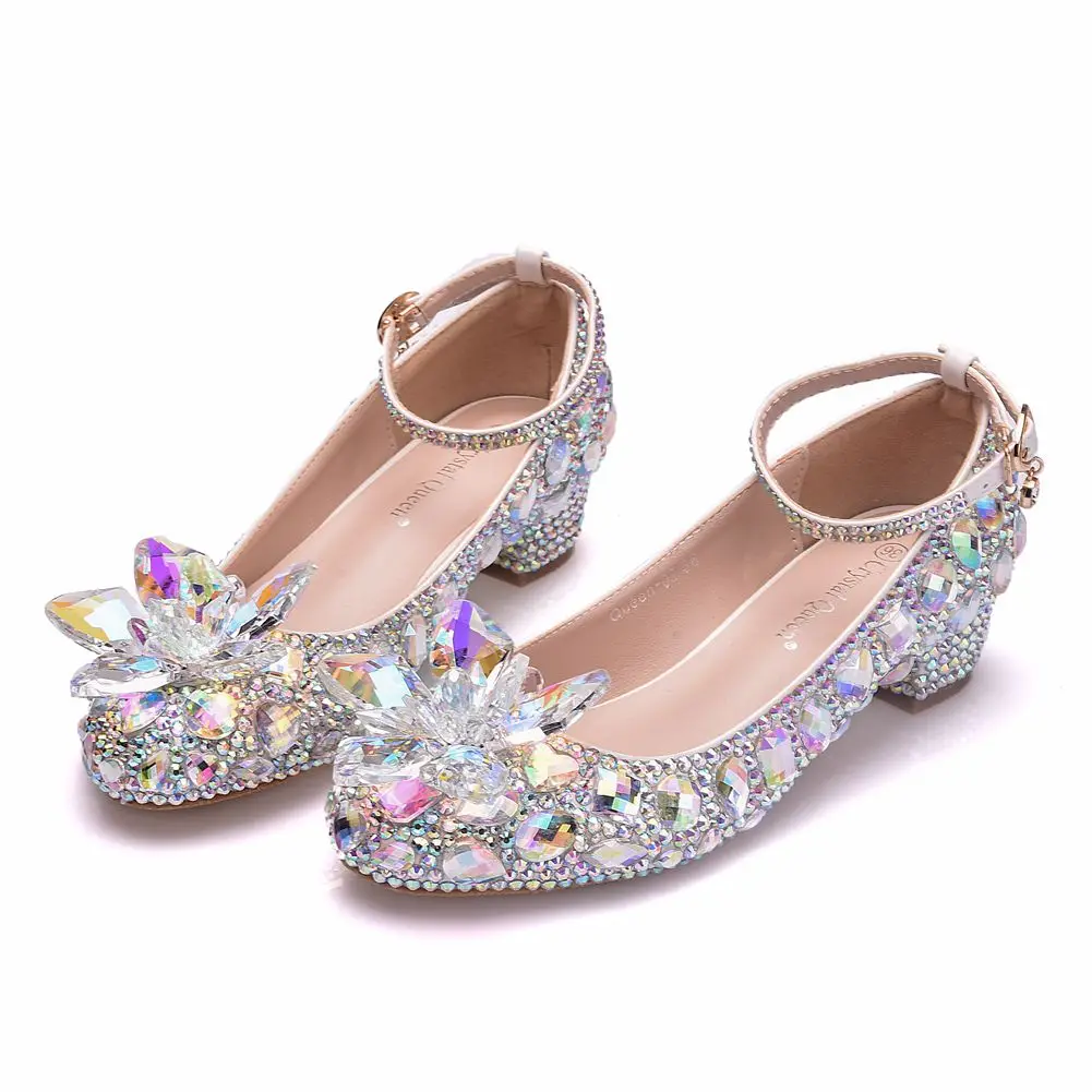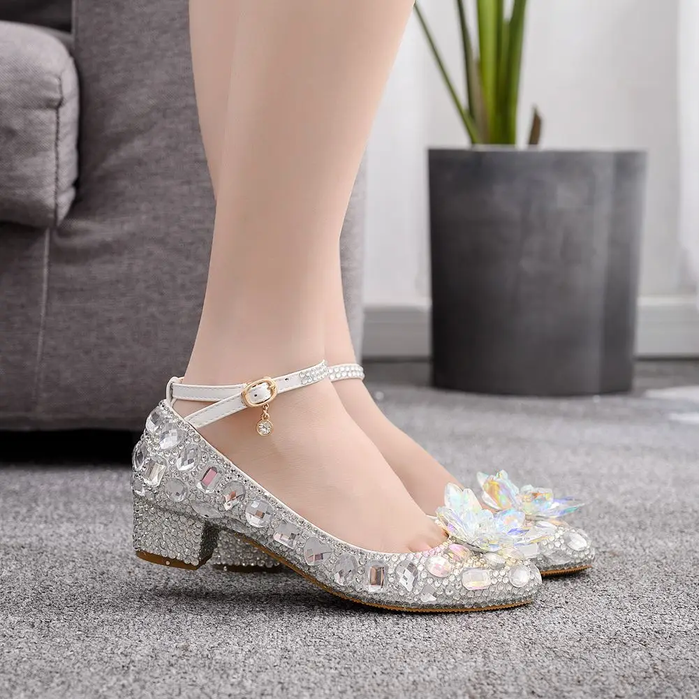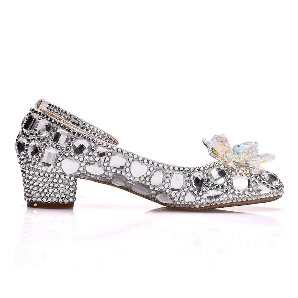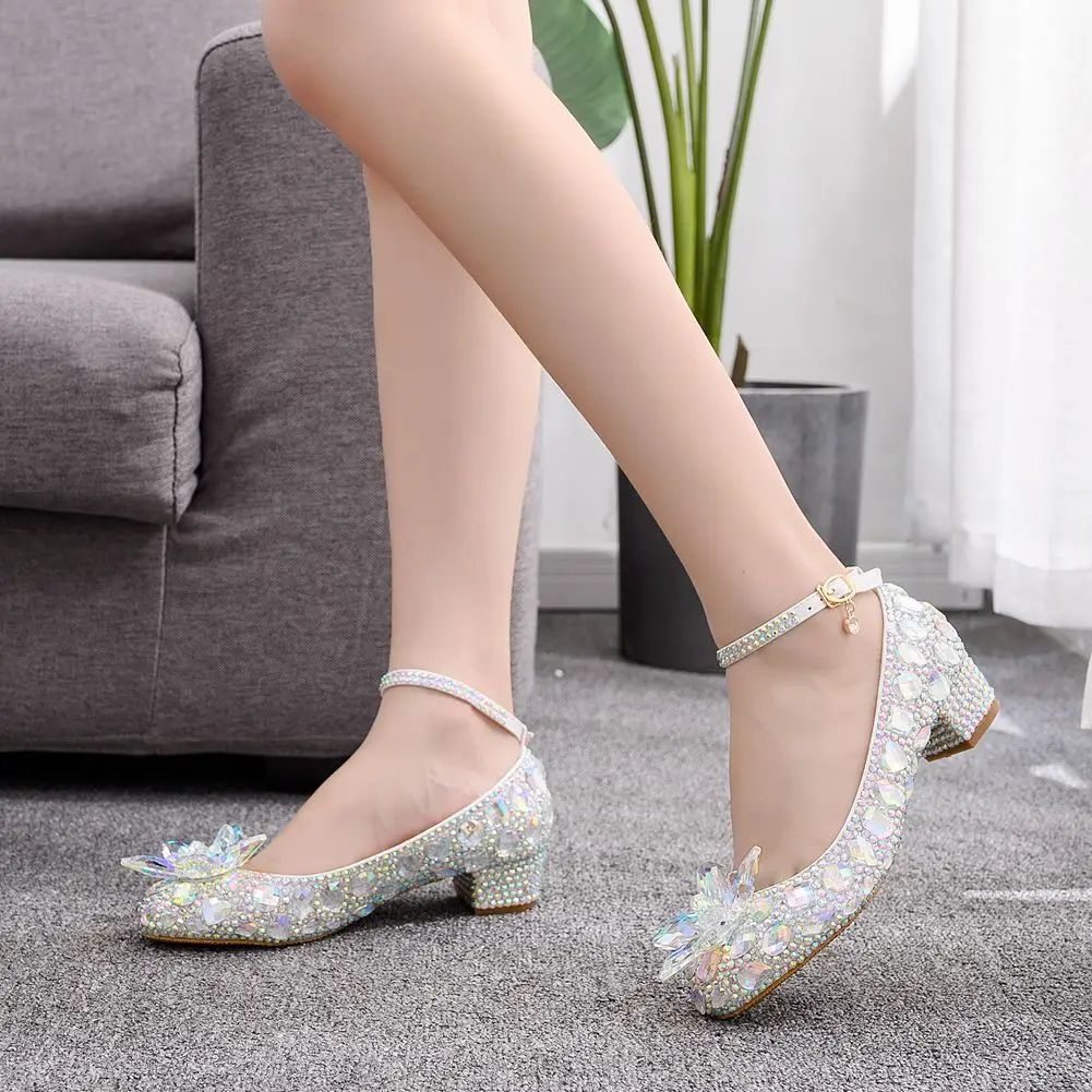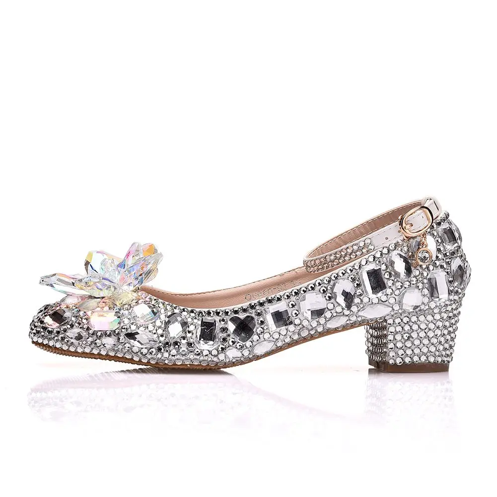 Туфли-лодочки женские на высоком каблуке, королевская Свадебная обувь с кристаллами, с блестками, для принцессы, Золушки, вечеривечерние