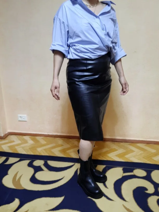 Заказ пришел быстро. Качество хорошее, запаха нет, швы ровные! Но, так как на картинке, она сидит (по крайней мере у меня!), просто прямая юбка! брала 2хl на русский 48 - все подошло отлично! И, кстати, смотрится, правда, как кожаная!) На рост 172 - до середины колен, длина.....