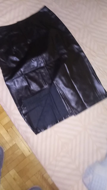 Юбка эко кожа, мягкая. Заказала L маломерит. Доставка очень долго почти 3месяца до KZ. Юбка из 5 балов ставлю 4. Не плохо.