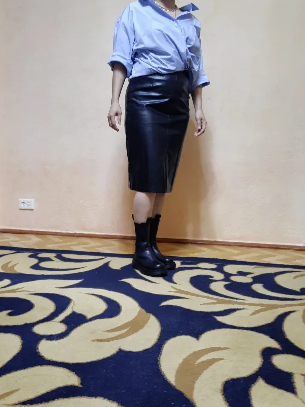 Юбка неплохая, вполне достойная за такие деньги. Не совсем понравился прямой крой, поэтому придётся переделать- заузить к низу, чтобы более сексуально сидела. Взяла размер S, в талии и на бёдрах села хорошо.