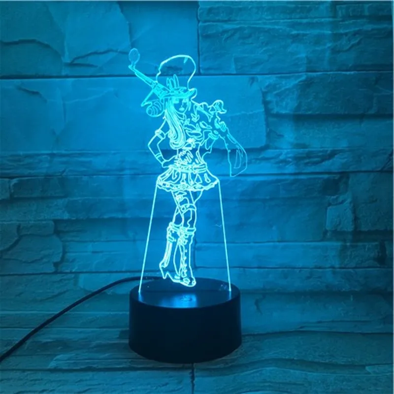 Ночник League of Legends, прикроватный светодиодный светильник шерифа пилтовера, праздничный ночсветильник, подарок, декор для комнаты, ночник LOL Vi, Кэйтлин