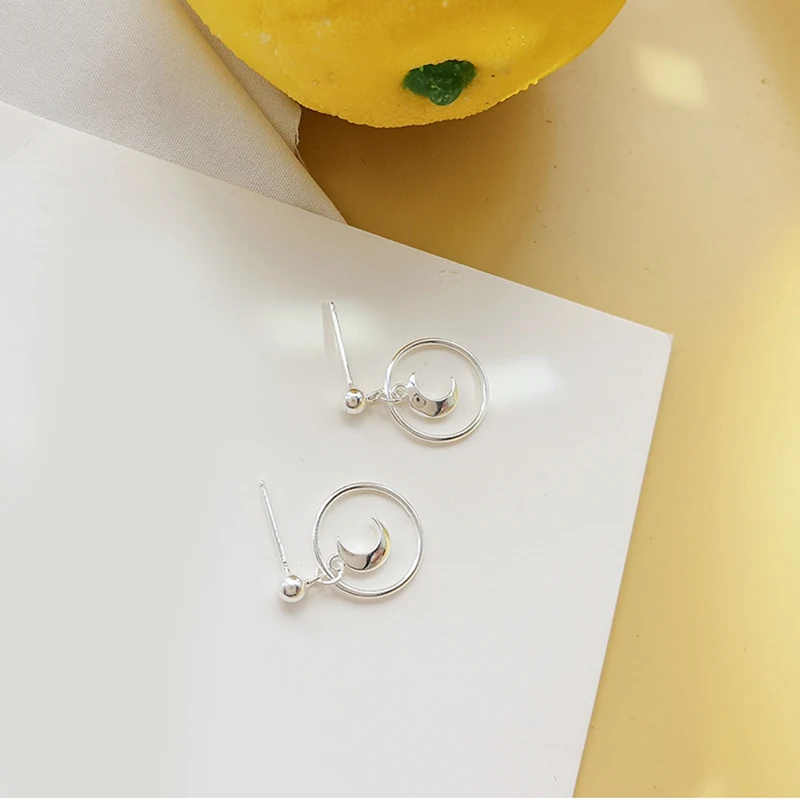 Серьги-подвески серебряного цвета в виде Луны для женщин и девочек