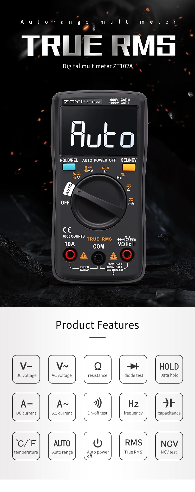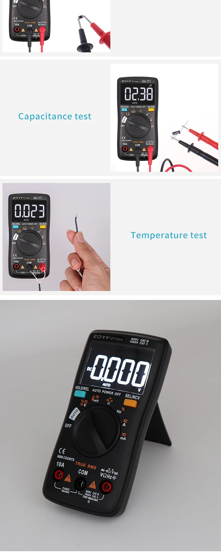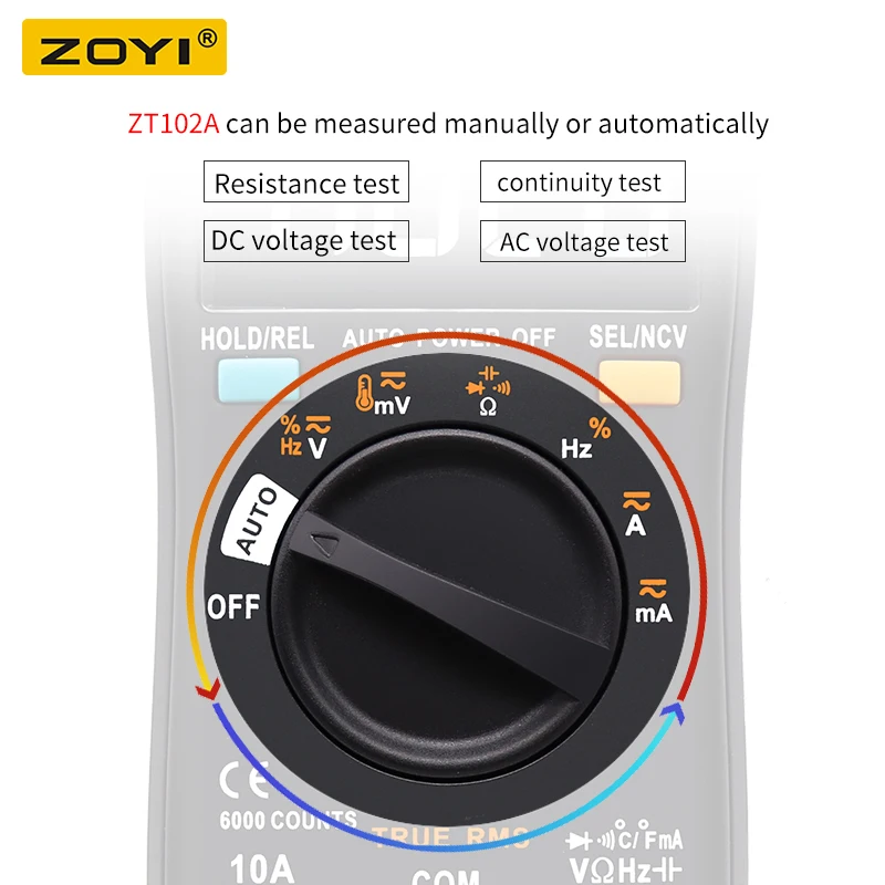 Цифровой мультиметр ZT102A 6000 отсчетов Авто 113D Подсветка AC DC Вольтметр Транзистор Тестер Частота Диод Температура