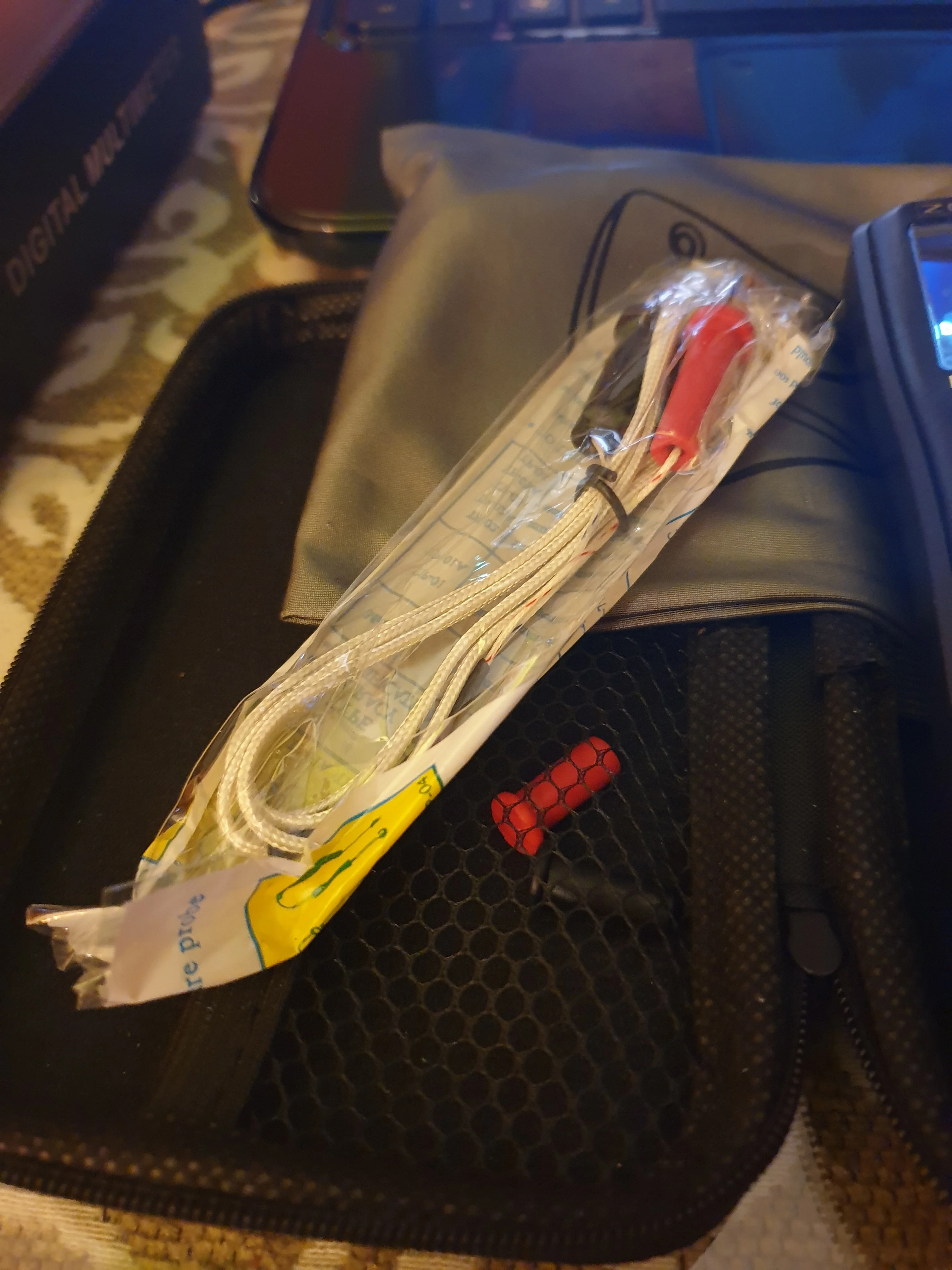 Приятный, удобный, небольшой. В комплекте с мешочком. Щупы удобные с заглушками. Термопара рабочая. + к нему добавили небольшой кейс. Доставили Очень быстро.