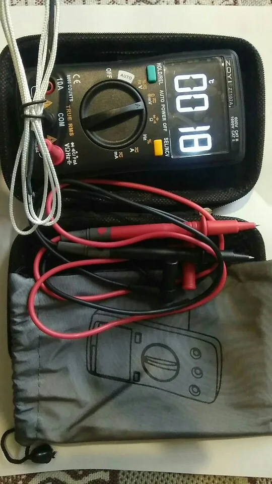 Наконец то получил мультиметр! Всё как описано с заказе. Продавец прислал подарок, чехол для мультиметра! За что ему огромное спасибо! Стал проверять. Температуру моего тела, далее 31-го градуса не стал прибавлять. Наверное уже остываю.)))) Остальные показания более менее точны. Если найду косяки, напишу дополнительно. Пака писал, мультиметр пискнул, и выключился. Замечательно, есть автовыключение. Рекомендую к покупке!