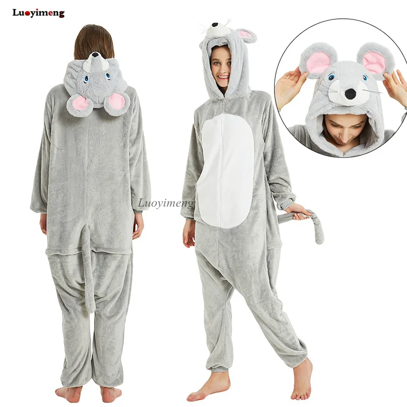 Пижама кигуруми в виде единорога для взрослых, зимняя Фланелевая Пижама унисекс с мультяшным рисунком мыши, единорога