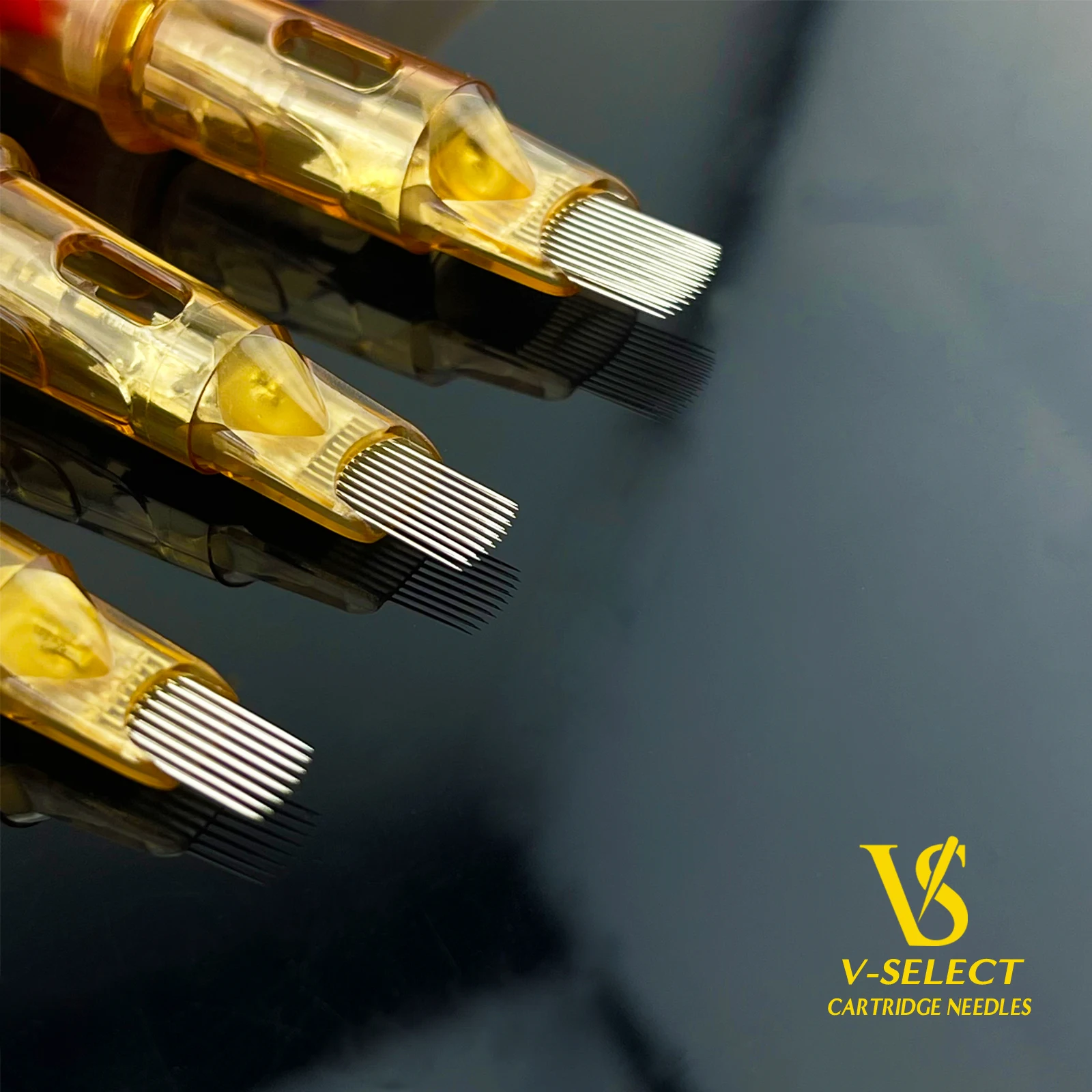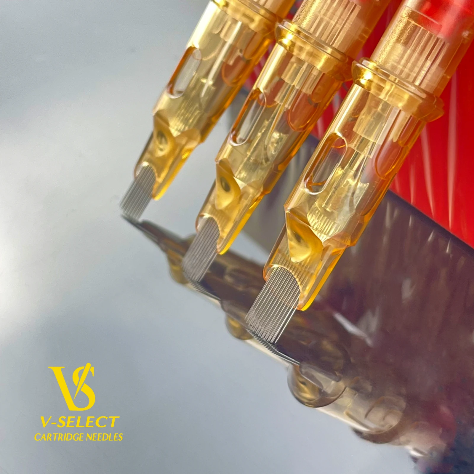 Оснащенные v-образной системой, картриджи с v-отбором оснащены системой точного позиционирования и эластичной мембраной для создания экстремальных характеристик татуировок