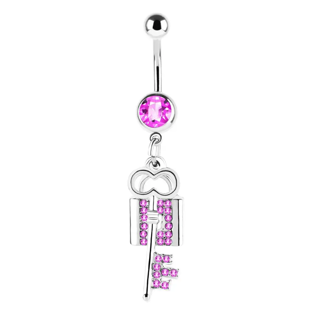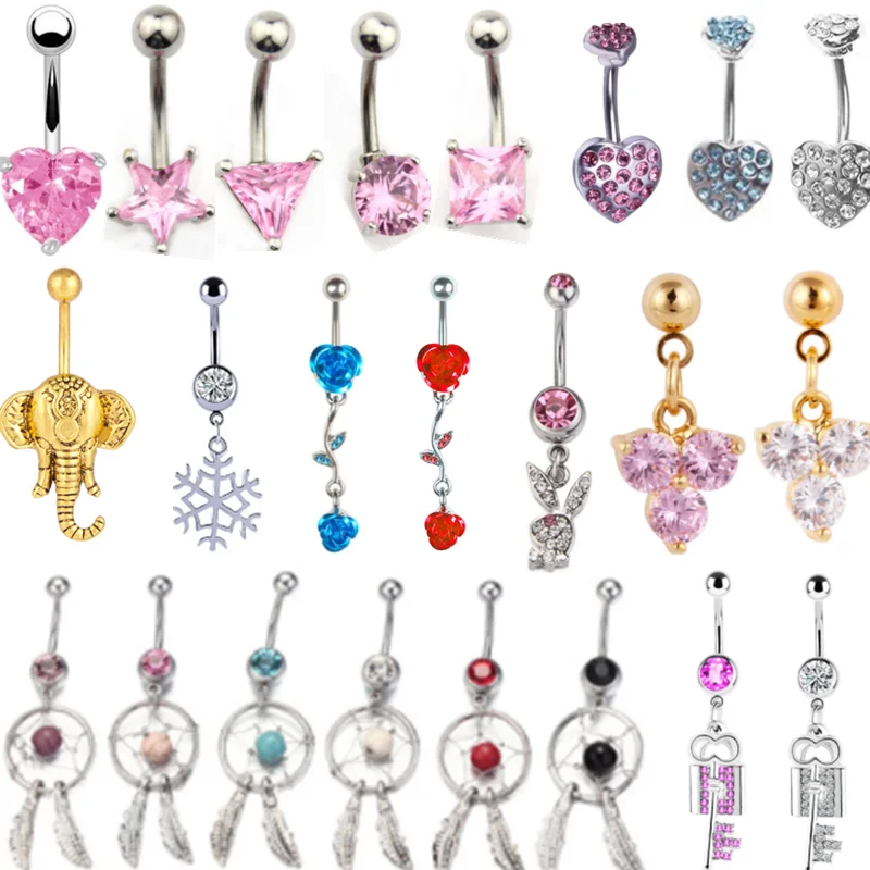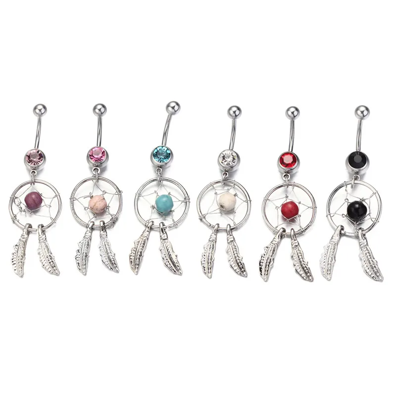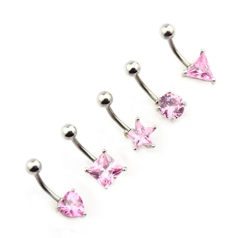 Кольцо для пупка в стиле бохо, с розовым цирконием, подвеска в виде сердца перо, для пирсинга, из хирургической стали, ювелирные изделия для пирсинга пупка, 1 шт.