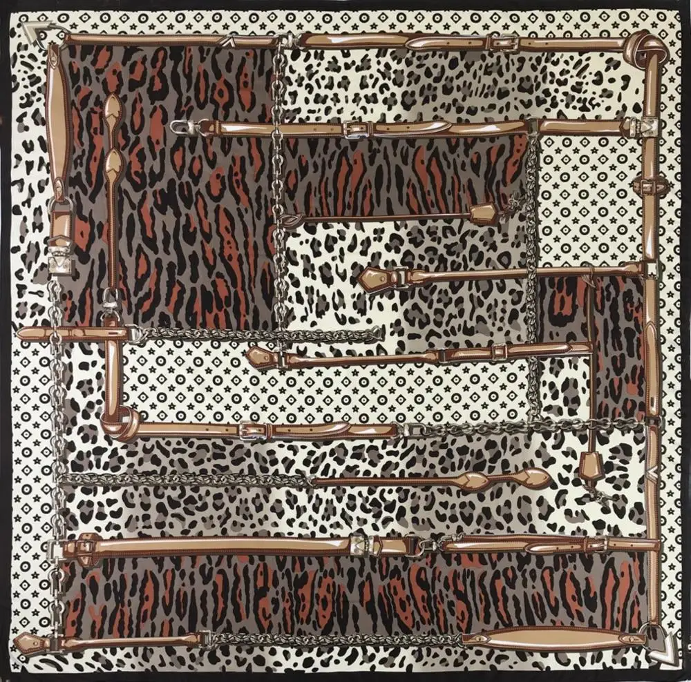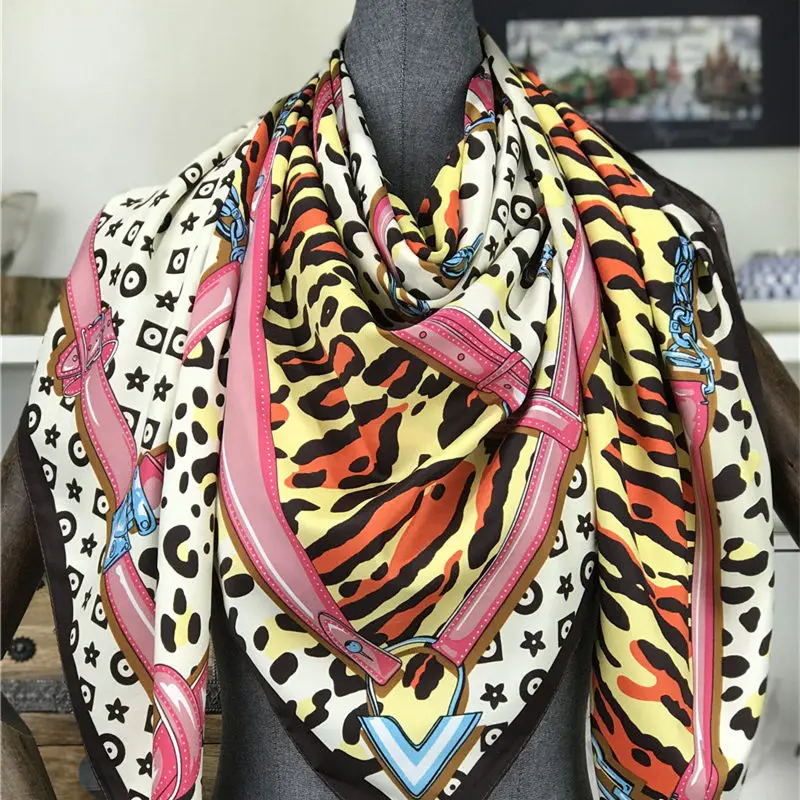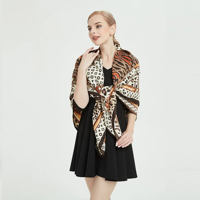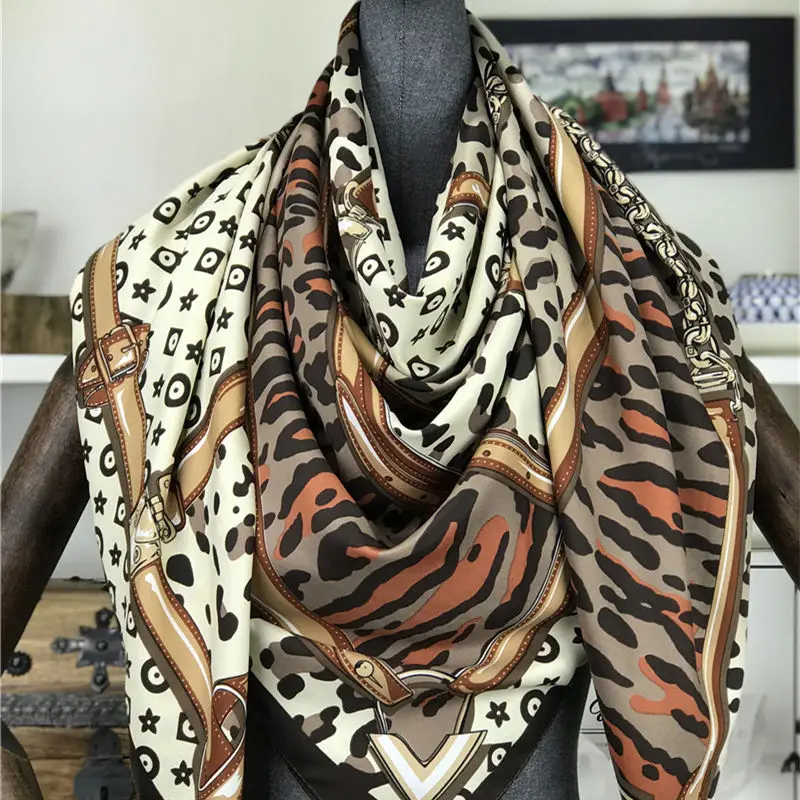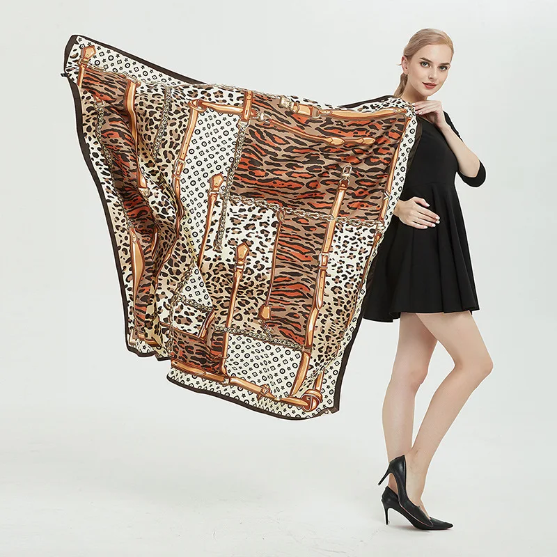 Шарф женский из 100% шелка с леопардовым принтом, Квадратный, 130 х 130, украшение для шарфа