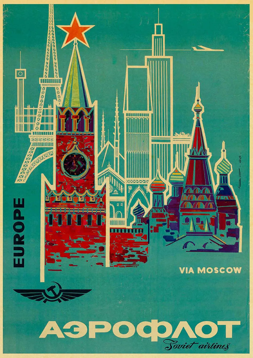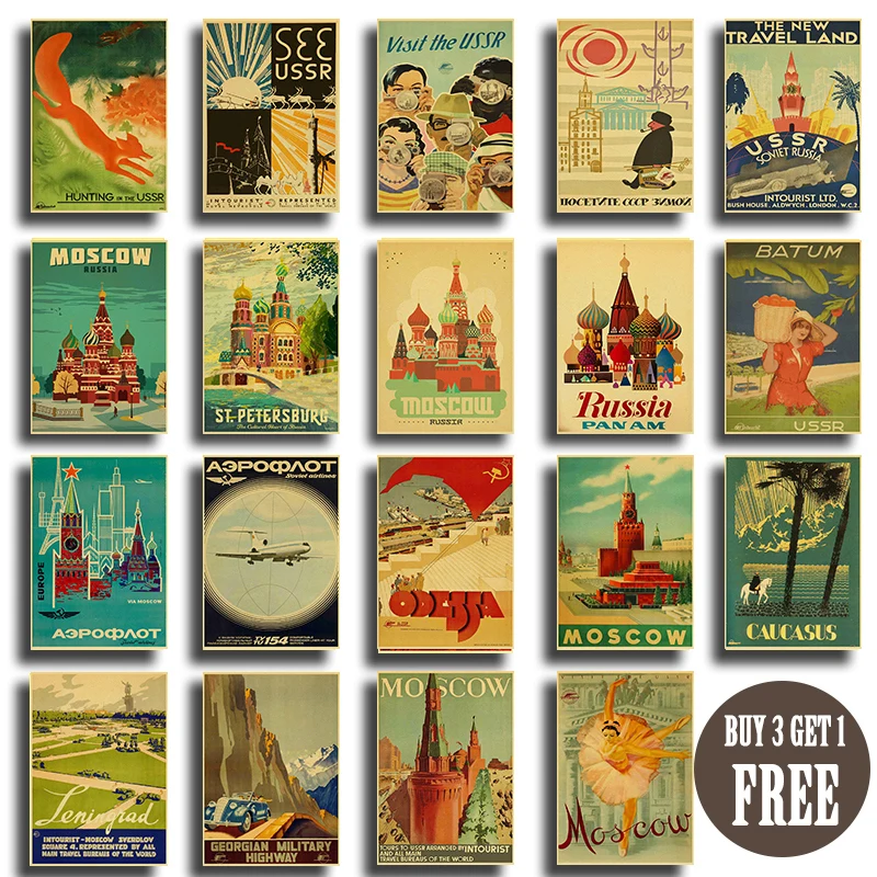 Винтажный постер СССР для путешествий, постер из крафтовой бумаги, домашний декор, художественная живопись, наклейки на стену