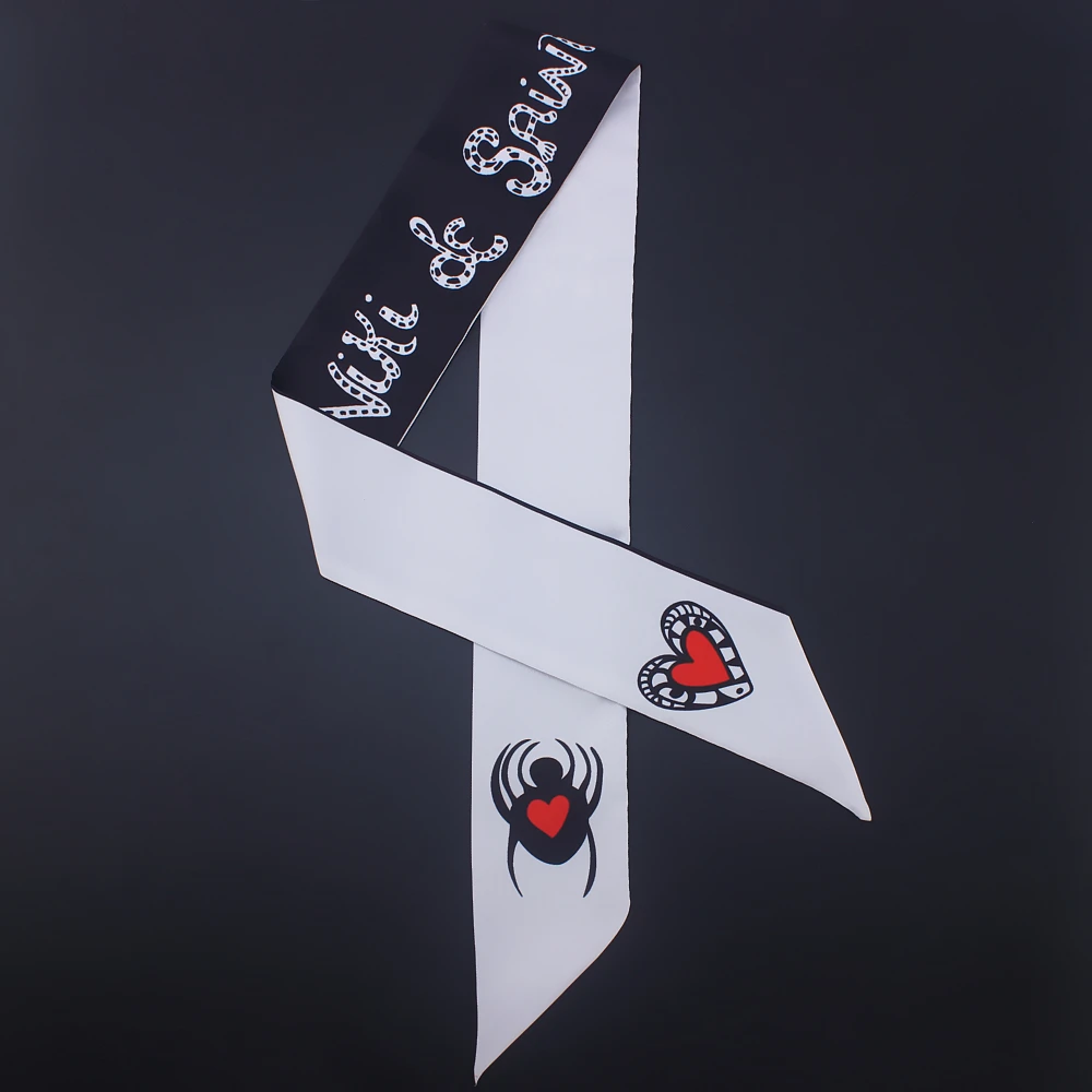 100 см * 6 см длинный маленький женский шарф узкий шарф женский шелковый шарф женский модный ремень роскошный брендовый головной шарф с принтом в виде паука и сердца