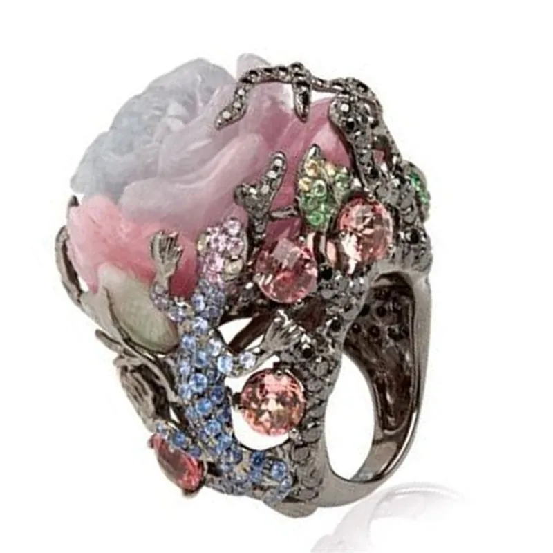 Женское Винтажное кольцо с фианитом, черное кольцо в этническом стиле