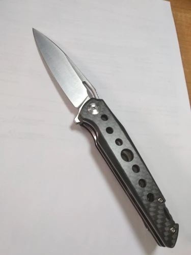 Нож пришел быстро, отравка из Росссии. Отличный складишек оказался. Механизм не люфтит, защелка держит хорошо, при складывании вконце замагничивается в рукоять и самопроизвольно не открывается, раскрывается легкимдвижением пальца, гринд клинка ровный. Единственное на рукояти не карбон, как я "мечтал", а какой-то пластик с иммитацией под карбон, но пластик достаточно приятный тактильно, поэтому за эти деньги и фик с ним.)) Сделано все добротно, ощущается значительно дороже 20 долларов. Вобщем рекомендую.