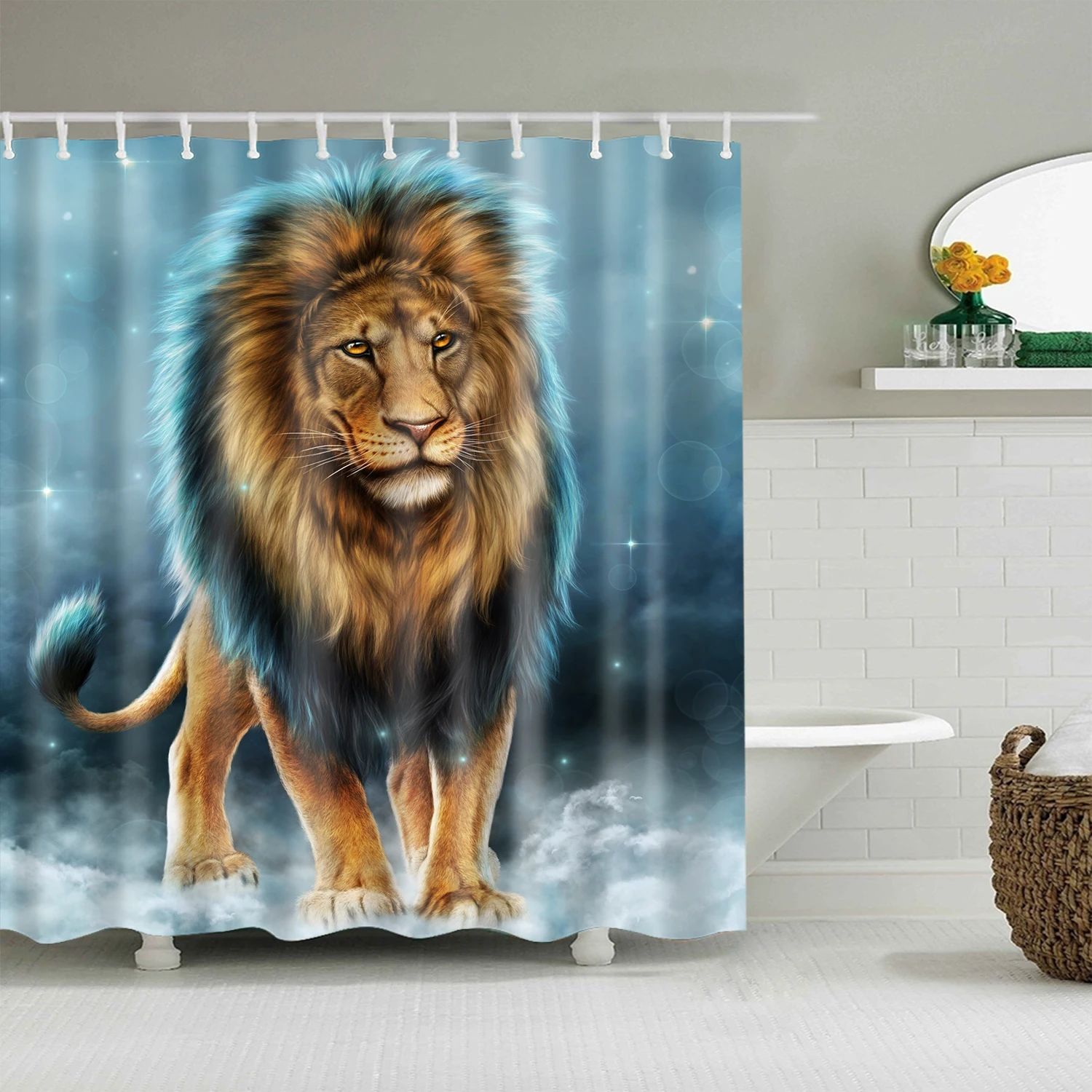 Декоративная занавеска для душа с животными, слон, кошка, волк, пан...