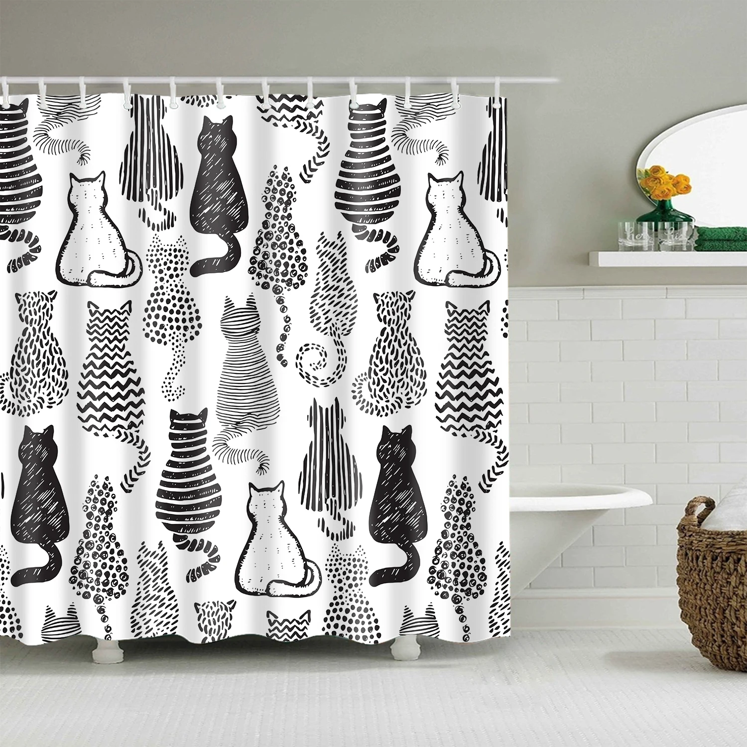 Занавеска для душа из полиэстера, водонепроницаемая, черно-белая
