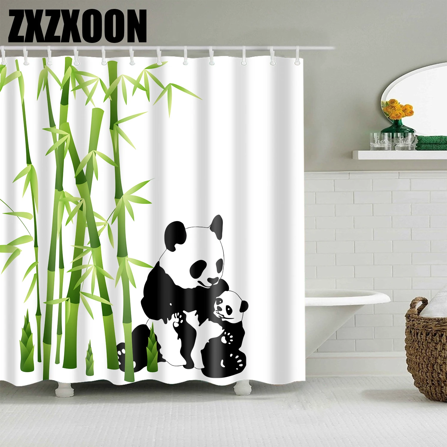 Занавеска для душа с мультяшными животными, кошкой, пандой, слоном, занавеска для ванной из водонепроницаемого полиэстера, занавеска для ванной комнаты