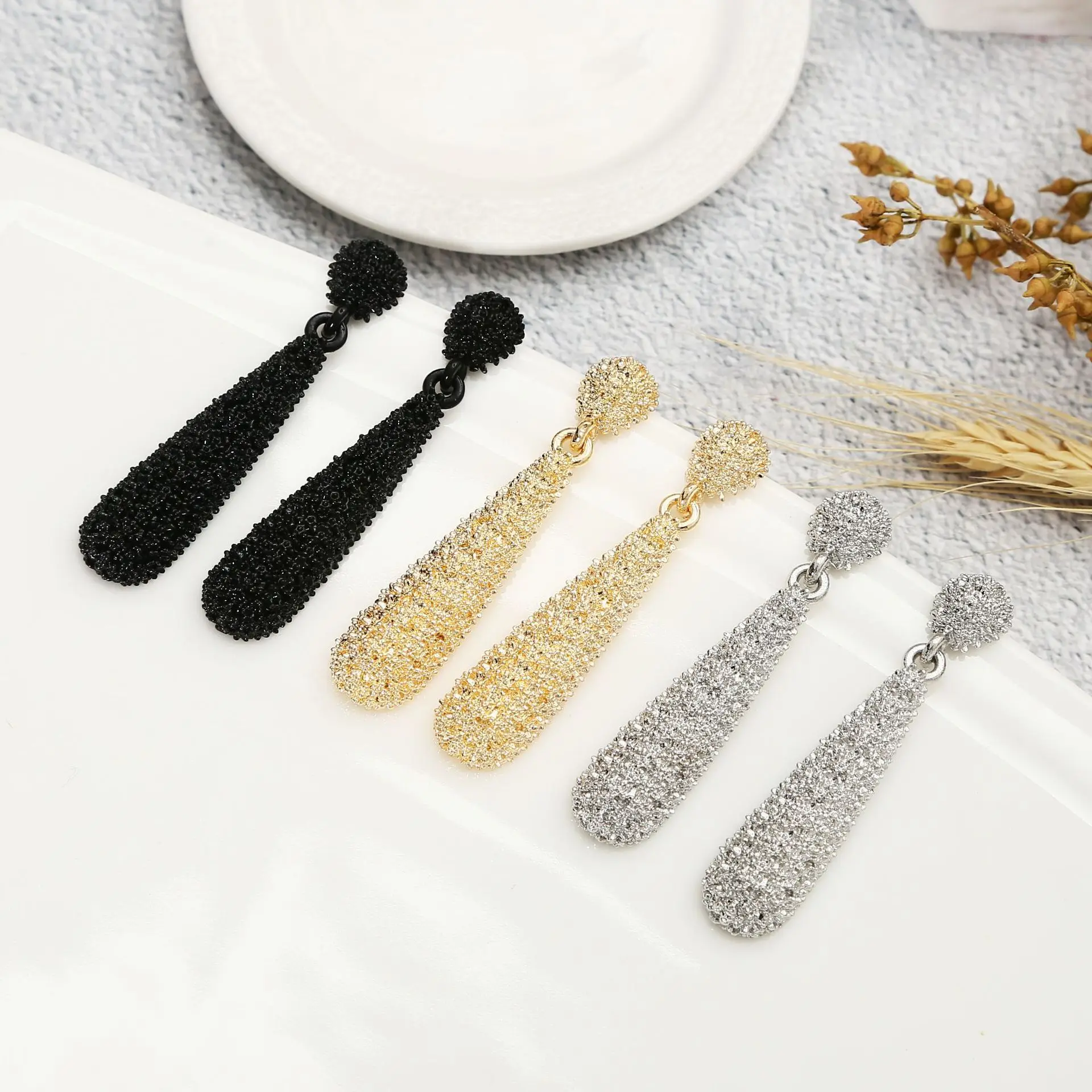 Серьги-подвески женские металлические, золотистые, черные