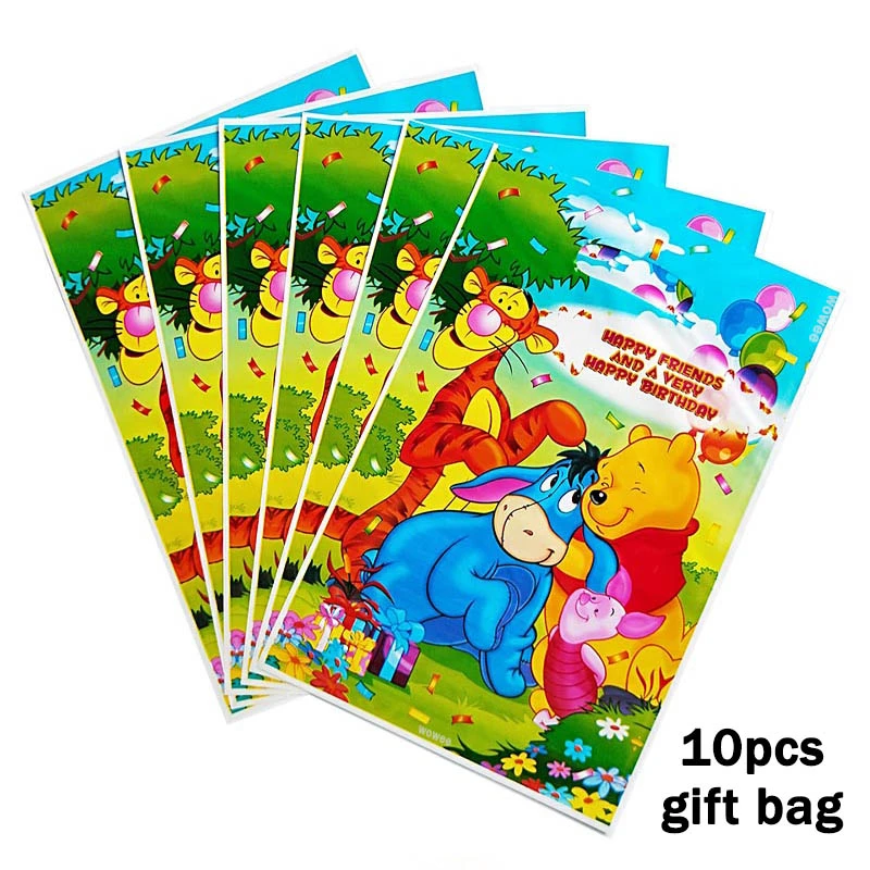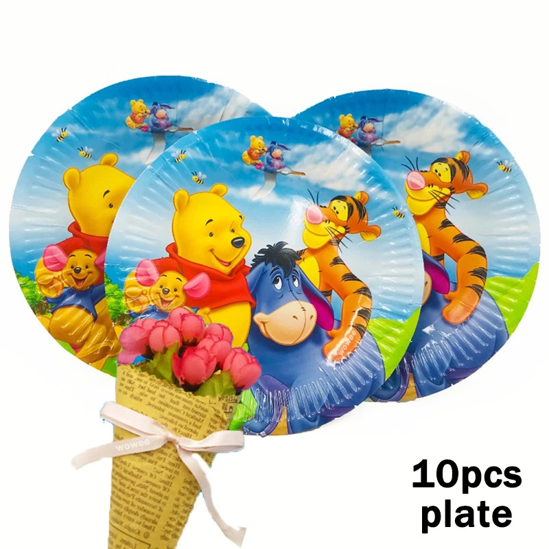 10 детских одноразовых столовых приборов с изображением медведя Винни, праздничные принадлежности для дня рождения, праздничные украшения, Вечерние Декорации