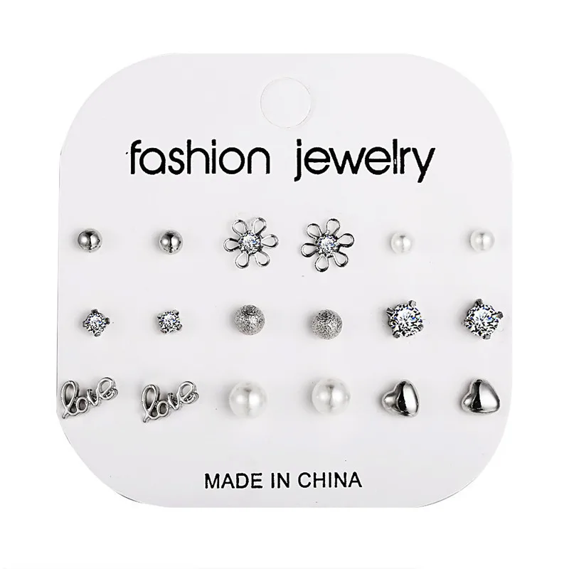 Комплект из серег-гвоздиков с кристаллами и циркониевые шары для карт, серьги с цветами любви, женские серьги с имитацией жемчуга, свадебные ювелирные изделия для невесты