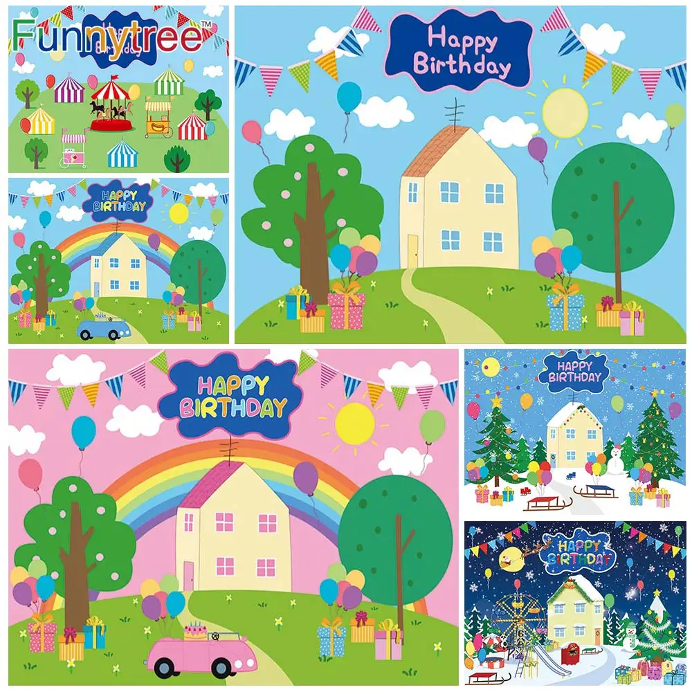 Фон Funnytree для дня рождения мультяшная поросенка детский душ веч...