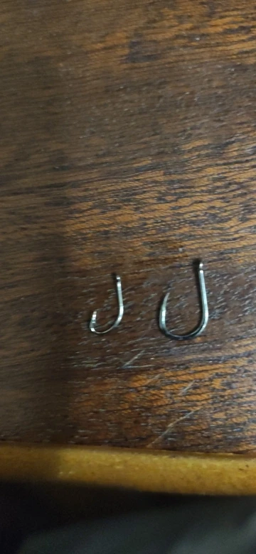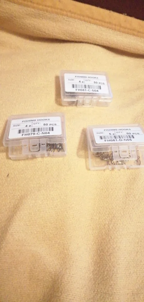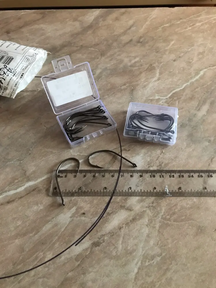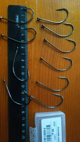 Всем доброго времени суток! Крючки нормальные за такую цену, доставка быстрая до Питера меньше двух недель!!! А вот размер ..... я брал 5 а пришли ... в общем на фото видно с права 4 й номер а с лева типо этот 5й !!! Это единственный косяк да и ху с ним пусть лежат жрать не просят!