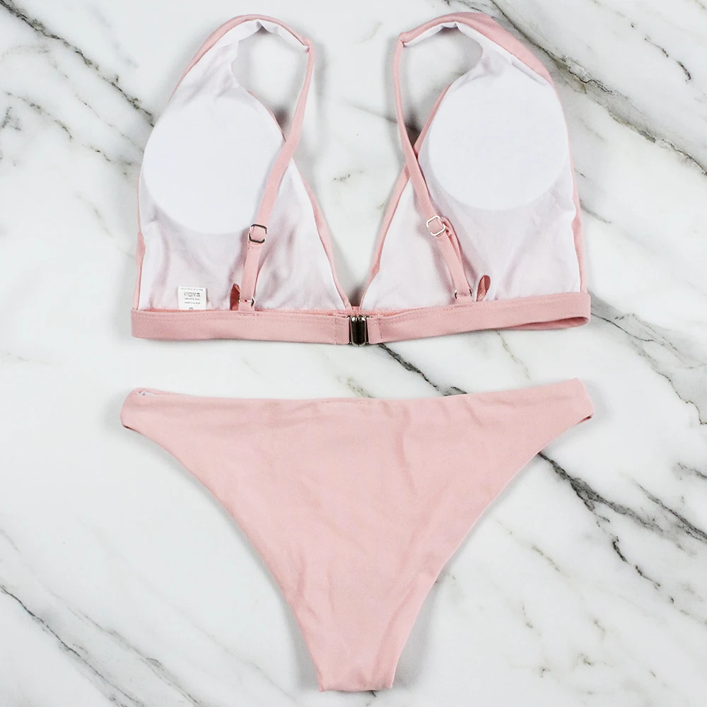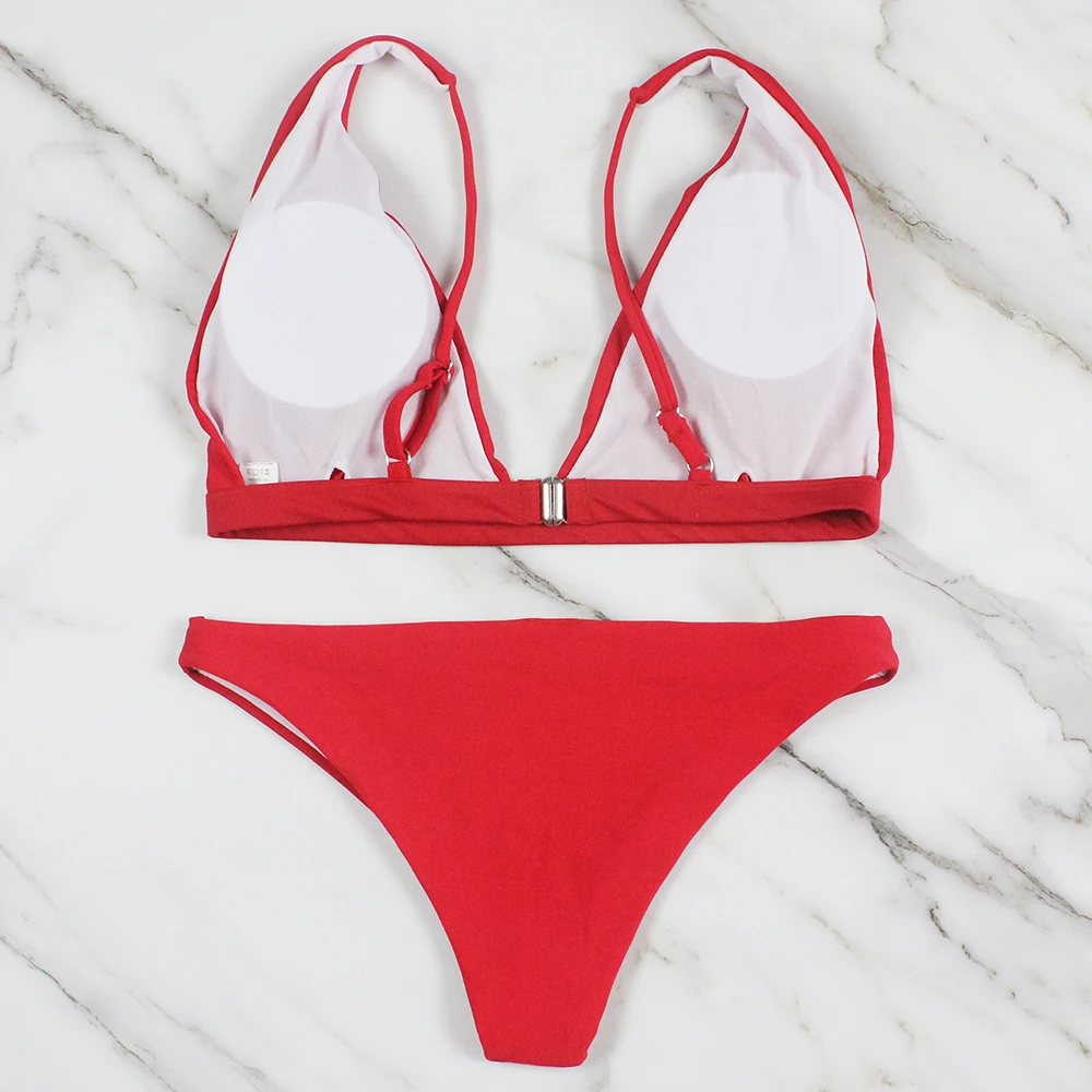 Женское сексуальное бикини с низкой талией, простой Однотонный женский купальник, заводская цена, пляжная одежда, комплект бикини с подкладкой