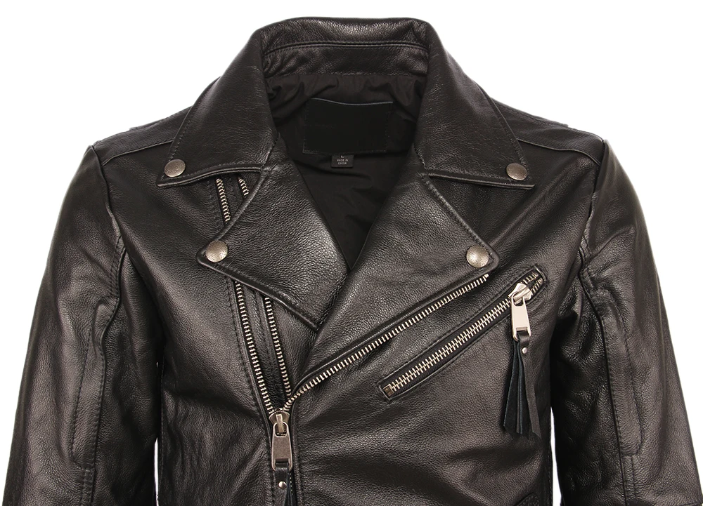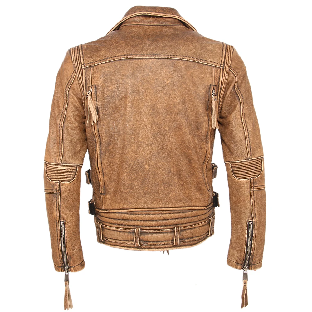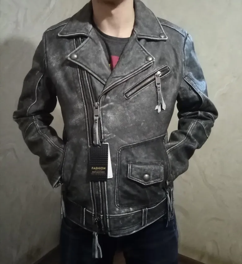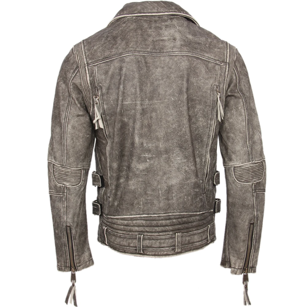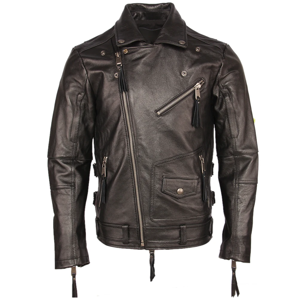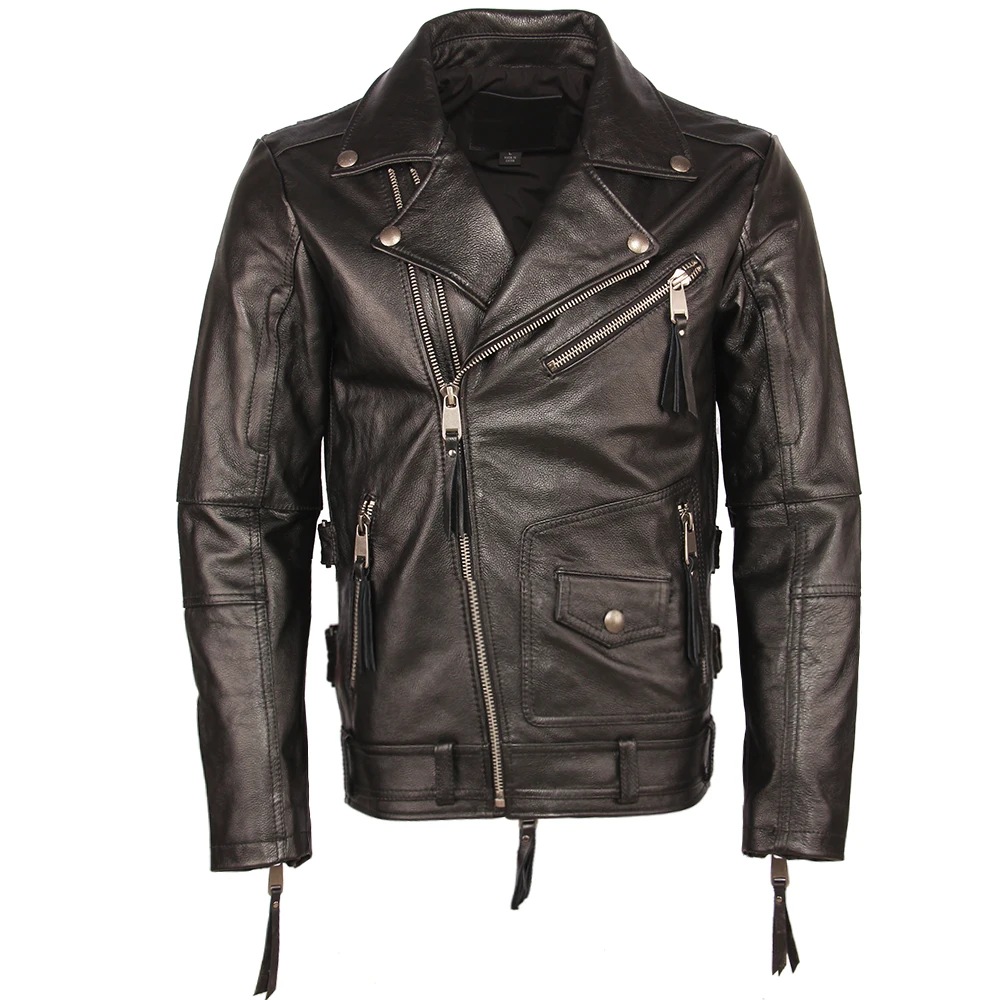 Косуха Винтажная мотоциклетная куртка облегающая Толстая мужская кожаная куртка Байкерская мотоциклетная куртка из 100% воловьей кожи мужское кожаное пальто зимнее теплое M455