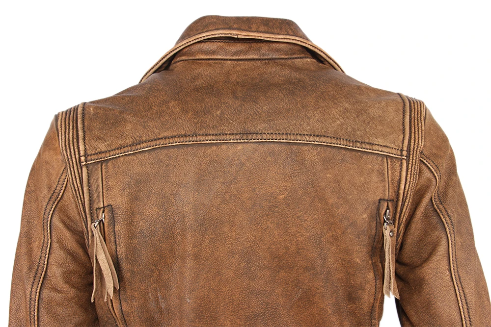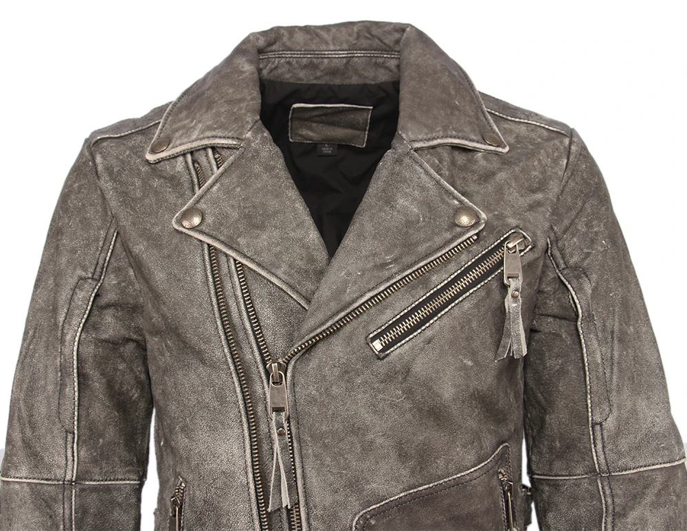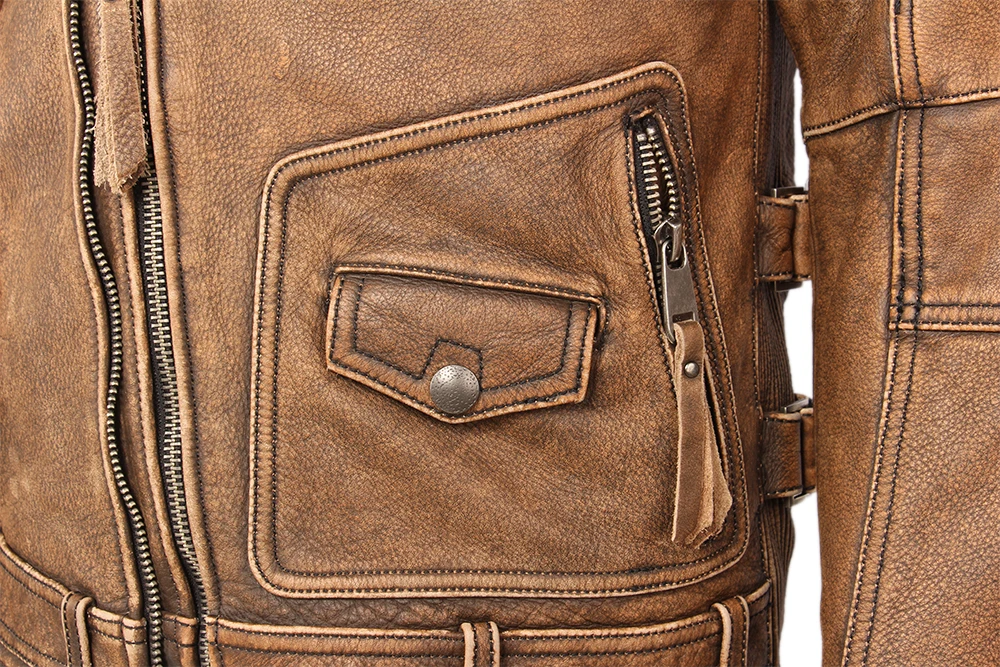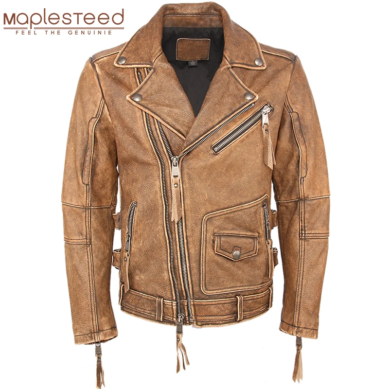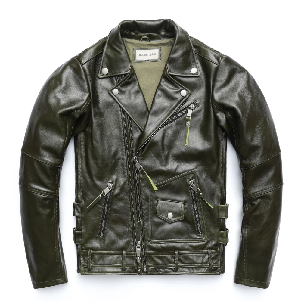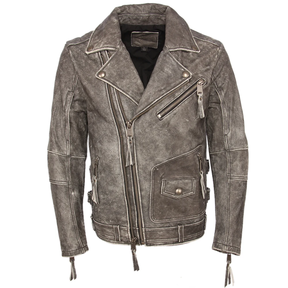 Косуха Винтажная мотоциклетная куртка облегающая Толстая мужская кожаная куртка Байкерская мотоциклетная куртка из 100% воловьей кожи мужское кожаное пальто зимнее теплое M455