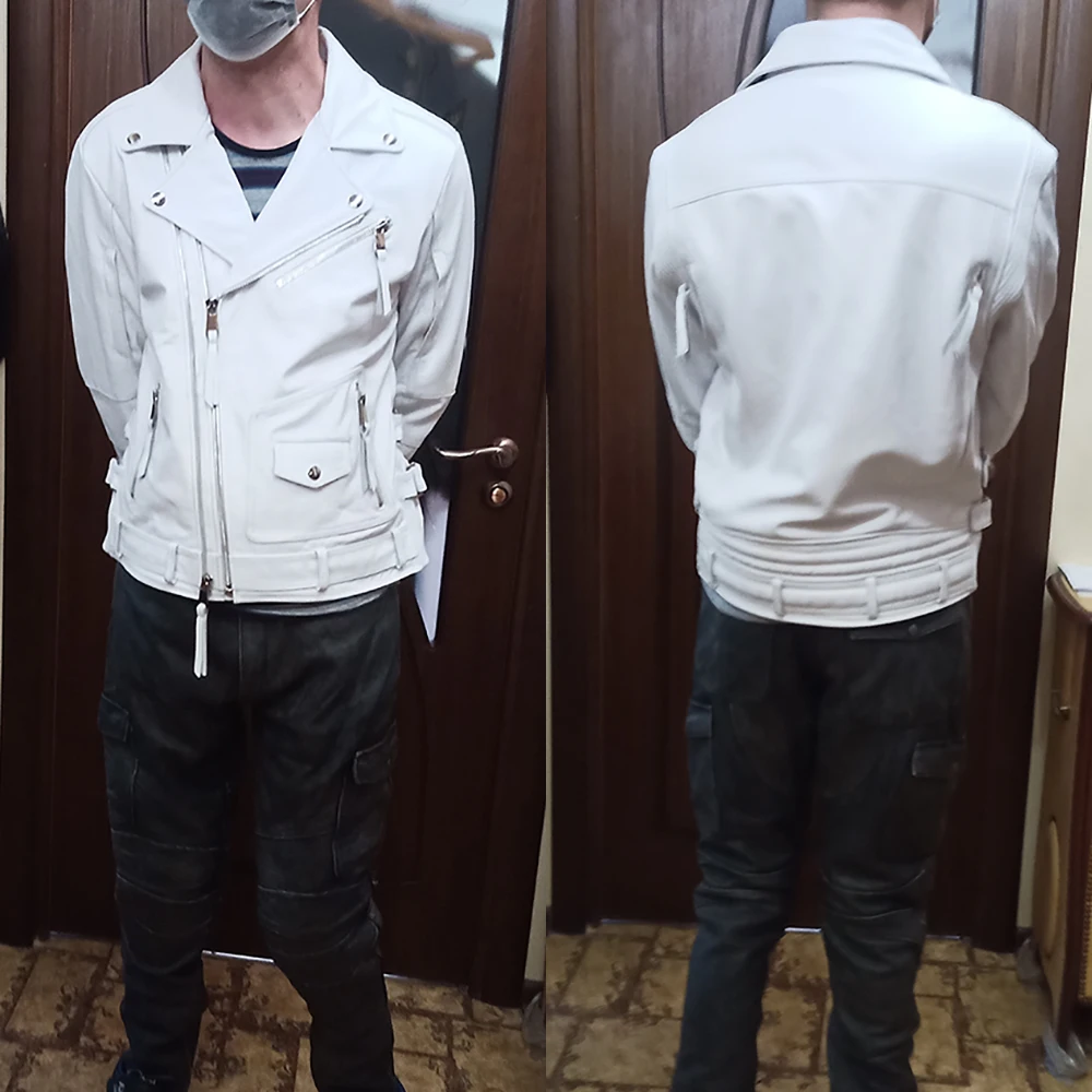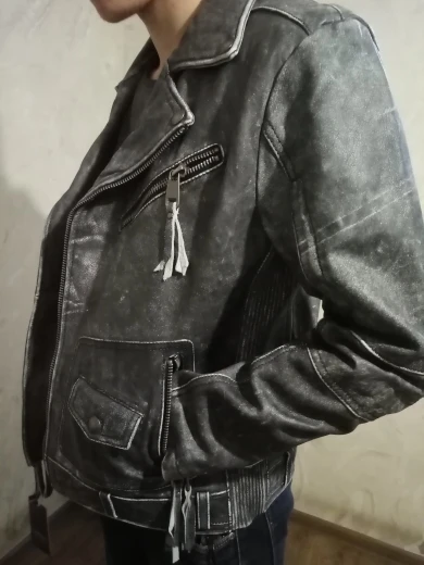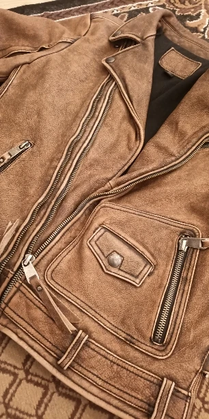 Куртка классная, похоже что действительно кожа. Тяжеленная! Подклад тоже порадовал, приятный к телу. Сшито всё добротно, замки мощные, вроде качественные. Карманы, 4 снаружи и 4 внутри, все глубокие, полноценные, не обманки. Заказываю сыну второй раз, первая была L, оказалась мала на рост 176см. Плечи 46-48см. Объём груди, где-то 105см. Немного стесняла движения и рукава коротковаты оказались, пришлось вторую заказать уже XL, Вроде села хорошо.У сына худощавое телосложение, но плечи широкие и руки длинные. Если вы плотнее и выше хоть немного, то уже лучше брать XXL. Первая пришла быстро, в Казахстан г. Тараз за 23 дня на почту, а вот вторая 3 месяца ехала, я уже думала что её спёрли где-то)) но нет, приехала, в целости и сохранности, причём курьер домой привёз. Надеюсь L-ку получится продать, деньги то всё же не так уж и маленькие. Всем удачных покупок по Размеру, с первой попытки))