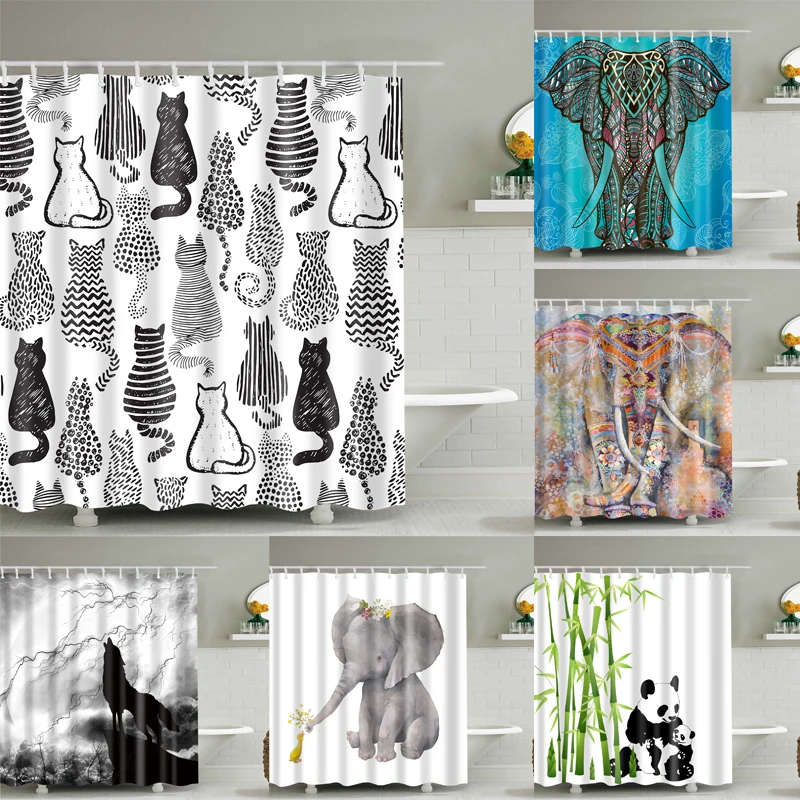 Декоративная занавеска для душа с животными, слон, кошка, волк, панда, занавеска для ванной из водонепроницаемого полиэстера с 12 крючками