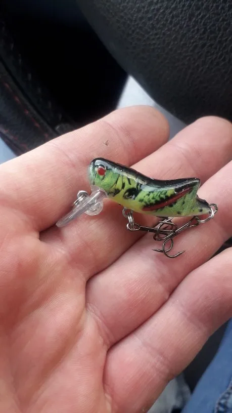 воблер хороший хорошо играет в воде , голавль на него реагирует , ловил только одного головля на зелёного кузнечика .
