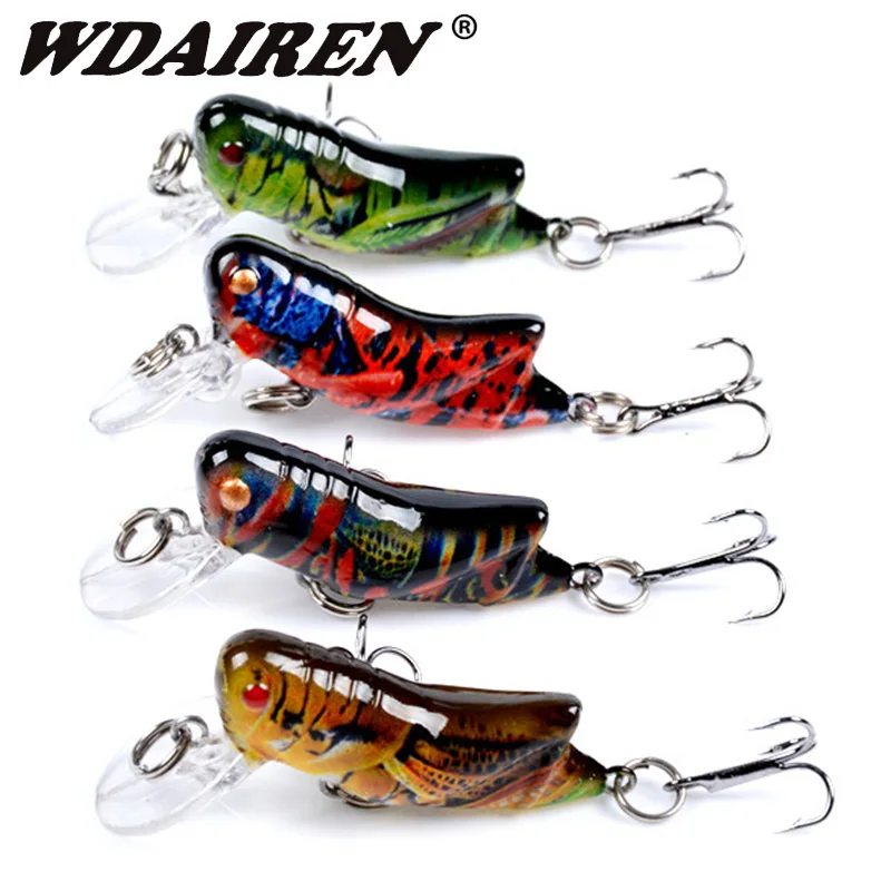 4 шт.компл., приманка в виде гольяна, рыболовный воблер, смешанные цвета, приманка в виде насекомых, кренкбейт для реалистичного пластика, Кузнечика, карпа, окуня, рыболовная снасть