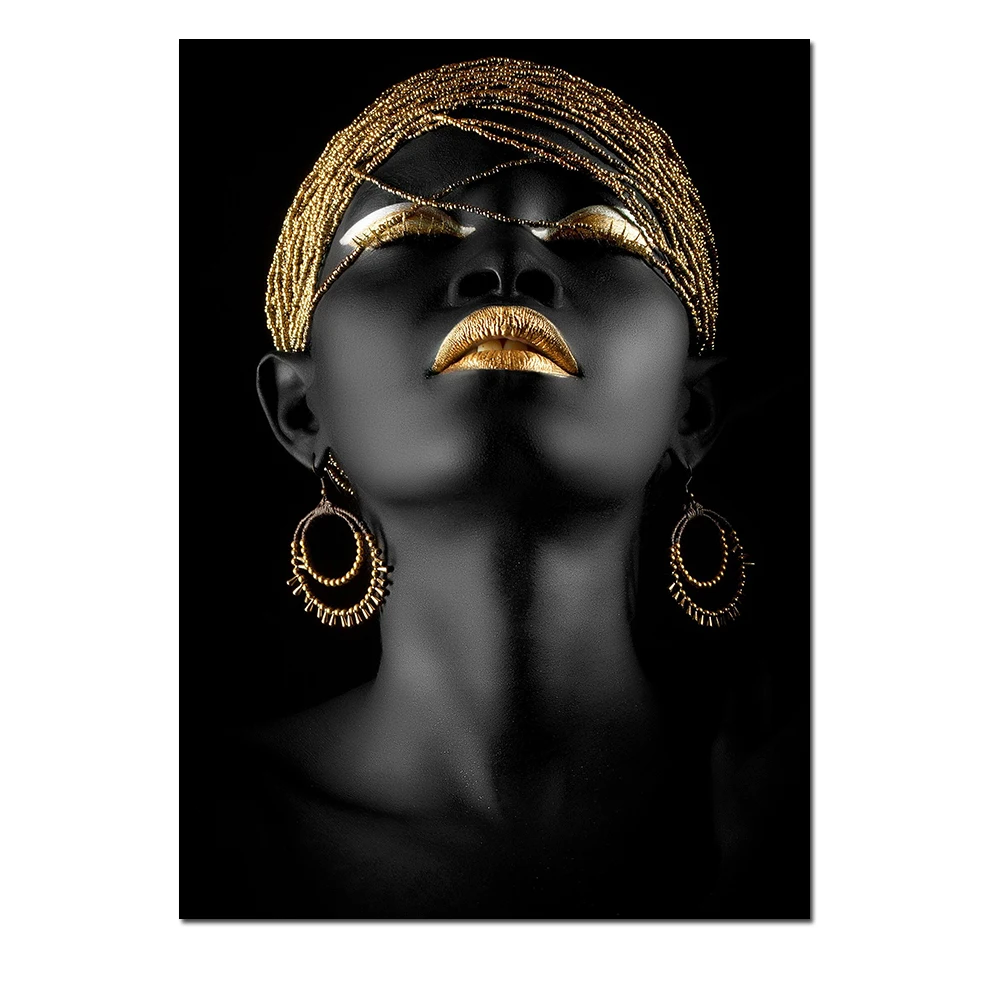 Абстрактная Золотая черная женщина, холст, картины, постеры и печат...