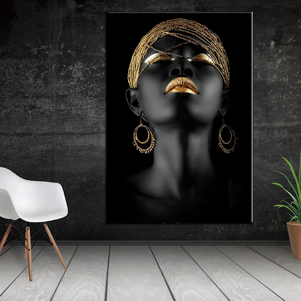Современный стиль картины Африканской женщины на холсте Золотой Чер...