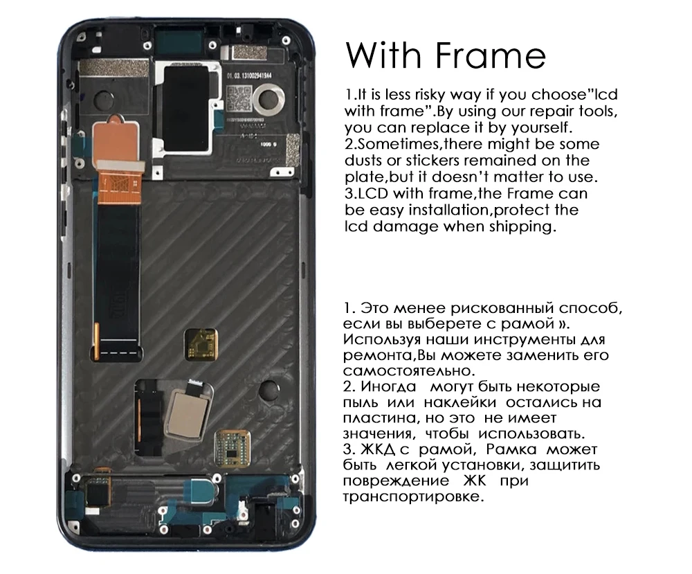 Изменить экран телефона:1. Проверьте, что мобильный телефон не поврежден и дисплей нормальный. Положите мобильный телефон в спящий режим, удалите аккумулятор и выньте поврежденный мобильный телефон.2. Выньте экран, который вы заказали, и подтвердите, что новый экран соответствует вашему телефону. Проверьте внешний вид экрана, а затем протестируйте экран (ВАЖНО) (Примечание: Не устанавливайте экран во время тестирования), чтобы подтвердить, что он отображается нормально.3. Тщательно Установите экран. Будьте осторожны, не нажимайте на экран телефона слишком сильно, чтобы предотвратить его растрескивание. Не тяните плоскую проволоку, чтобы избежать повреждения плоского провода.4. Если вы меняете экран в первый раз. Мы рекомендуем вам купить мобильный телефон с рамкой. Или попросите профессиональных техников помочь вам установить экран.